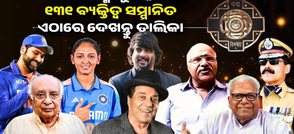 ଭାରତ ସରକାର ଆସନ୍ତା ୨୦୨୬ ବର୍ଷ ପାଇଁ ପଦ୍ମ ପୁରସ୍କାର ପ୍ରାପ୍ତ ବ୍ୟକ୍ତିତ୍ୱଙ୍କ ତାଲିକାକୁ ଘୋଷଣା କରିଛନ୍ତି। ଦେଶର ସର୍ବୋଚ୍ଚ ନାଗରିକ ସମ୍ମାନମାନଙ୍କ ମଧ୍ୟରୁ ଗୋଟିଏ ହୋଇଥିବା ପଦ୍ମ ପୁରସ୍କାର ପାଇଁ ଏହିବର୍ଷ ସମୁଦାୟ ୧୩୧ ଜଣ ବ୍ୟକ୍ତିତ୍ୱ ଚୟନିତ ହୋଇଛନ୍ତି। ଏଥିରେ ୫ ଜଣଙ୍କୁ ପଦ୍ମ ବିଭୂଷଣ, ୧୩ ଜଣଙ୍କୁ ପଦ୍ମ ଭୂଷଣ ଓ ୧୧୩ ଜଣଙ୍କୁ ପଦ୍ମଶ୍ରୀ ପୁରସ୍କାର ପ୍ରଦାନ କରାଯିବ। ଏହି ତାଲିକାରେ ସବୁଠାରୁ ଅଧିକ ଚର୍ଚ୍ଚିତ ନାମ ହେଉଛି ବଲିଉଡର ପ୍ରସିଦ୍ଧ … Continue reading 2026 Padma Awards ।। ଧର୍ମେନ୍ଦ୍ରଙ୍କୁ ମରଣୋତ୍ତର ପଦ୍ମ ବିଭୂଷଣ । ୨୦୨୬ ପଦ୍ମ ପୁରସ୍କାର ,୧୩୧ ବ୍ୟକ୍ତିତ୍ୱ ସମ୍ମାନିତ ଏଠାରେ ଦେଖନ୍ତୁ ତାଲିକା