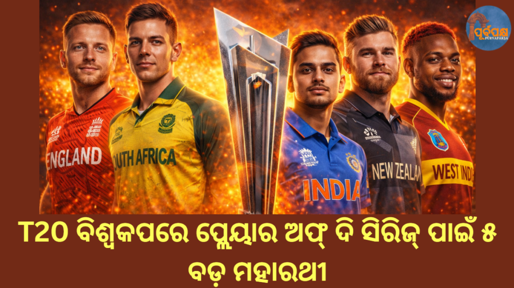 ୨୦୨୬ ଟି୨୦ ବିଶ୍ୱକପ୍ ଭାରତ ଏବଂ ଶ୍ରୀଲଙ୍କା ଦ୍ୱାରା ଆୟୋଜିତ ହେଉଛି। ଟୁର୍ଣ୍ଣାମେଣ୍ଟରୁ ତେରଟି ଦଳ ବାଦ୍ ପଡ଼ିଛନ୍ତି ଏବଂ ଇଂଲଣ୍ଡ ସେମିଫାଇନାଲରେ ପହଞ୍ଚିଛି। ବର୍ତ୍ତମାନ, ଛଅଟି ଦଳ ସୁପର ୮ ସେମିଫାଇନାଲରେ ତିନୋଟି ସ୍ଥାନ ପାଇଁ ପ୍ରତିଦ୍ୱନ୍ଦ୍ୱିତା କରୁଛନ୍ତି। ଆମେ ଆପଣଙ୍କୁ ପାଞ୍ଚ ଜଣ ଖେଳାଳିଙ୍କ ବିଷୟରେ କହୁଛୁ ଯେଉଁମାନେ ଏହି ଟି୨୦ ବିଶ୍ୱକପରେ ସିରିଜର ଶ୍ରେଷ୍ଠ ଖେଳାଳି ବିବେଚିତ ହୋଇପାରିବେ।