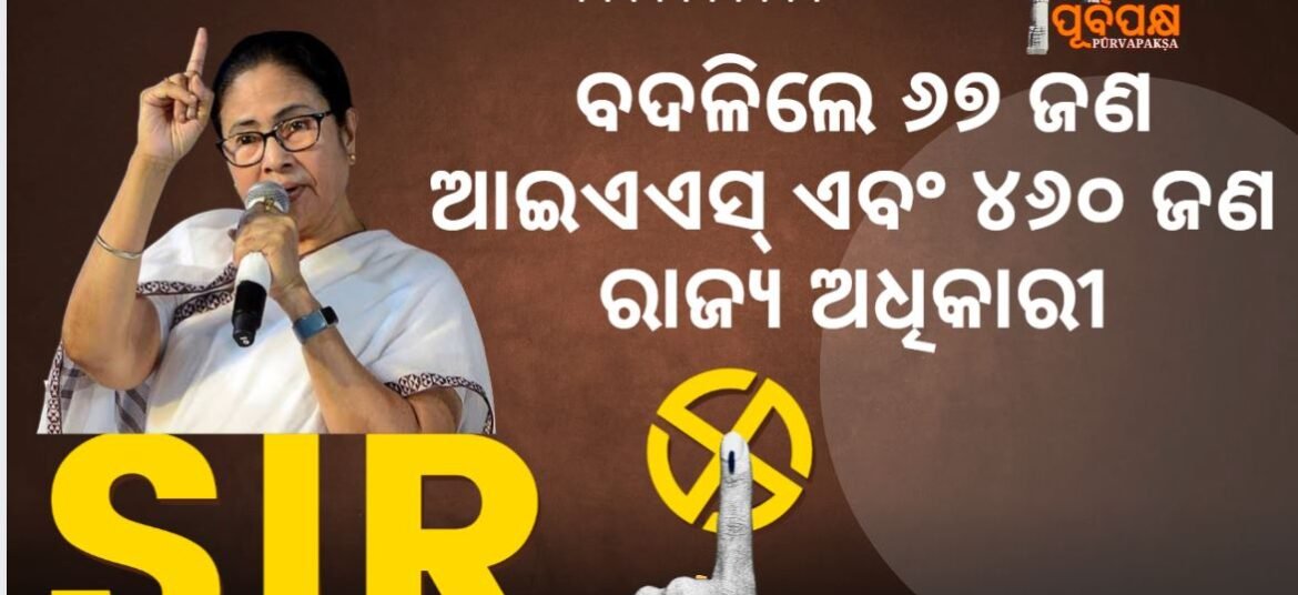 ପଶ୍ଚିମବଙ୍ଗ ସରକାର ଏକ ବଡ଼ ପ୍ରଶାସନିକ ଅଦଳବଦଳ କରିଛନ୍ତି, ଗୋଟିଏ ଦିନରେ ୬୭ ଜଣ IAS ଏବଂ ୪୬୦ ଜଣ ରାଜ୍ୟ ପ୍ରଶାସନିକ ସେବା ଅଧିକାରୀଙ୍କୁ ବଦଳି କରିଛନ୍ତି। ଏହି ପୁନର୍ଗଠନରେ ୧୪ ଜଣ ଜିଲ୍ଲା ମାଜିଷ୍ଟ୍ରେଟଙ୍କ ସହିତ ଅନେକ ନାଗରିକ ଏବଂ ଭିତ୍ତିଭୂମି ଅଧିକାରୀ ମଧ୍ୟ ସାମିଲ ଅଛନ୍ତି। ନିର୍ବାଚନ କମିଶନ ଭୋଟର ତାଲିକାର ସ୍ୱତନ୍ତ୍ର ସଘନ ସଂଶୋଧନ (SIR) ଆରମ୍ଭ କରିବାର କିଛି ମାସ ପୂର୍ବରୁ ସରକାରଙ୍କ ଏହି ପଦକ୍ଷେପ ଆସିଛି। ପଶ୍ଚିମବଙ୍ଗରେ ଖୁବ୍ … Continue reading 67 IAS officers and 460 state officers transferred ।। ୬୭ ଜଣ ଆଇଏଏସ୍ ଏବଂ ୪୬୦ ଜଣ ରାଜ୍ୟ ଅଧିକାରୀଙ୍କୁ ବଦଳି