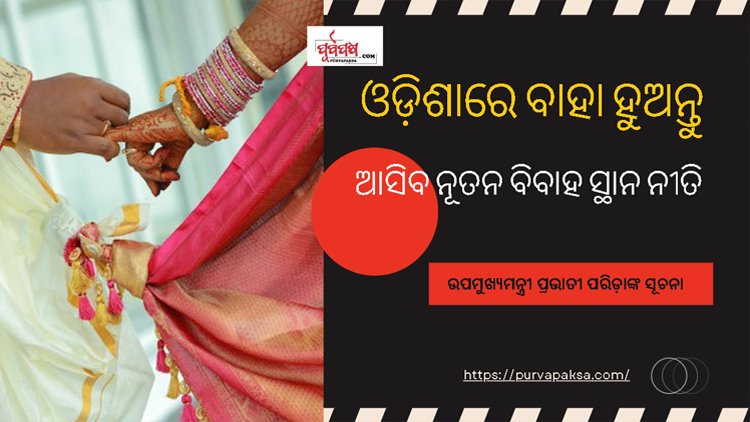 ଉପମୁଖ୍ୟମନ୍ତ୍ରୀ ପ୍ରଭାତୀ ପରିଡ଼ାଙ୍କ ଅନୁଯାୟୀ, ଓଡ଼ିଶା ସରକାର ରାଜ୍ୟକୁ ଭାରତର ଏକ ଶ୍ରେଷ୍ଠ ବିବାହ ସ୍ଥାନ କରିବା ପାଇଁ ଏକ ନୀତି ପ୍ରସ୍ତୁତ କରିବାକୁ ଯାଉଛନ୍ତି। ପର୍ଯ୍ୟଟନ ବିଭାଗ ଦାୟିତ୍ୱରେ ଥିବା ଶ୍ରୀମତୀ ପରିଡ଼ା ସାମ୍ବାଦିକମାନଙ୍କ ସହ ଆଲୋଚନା କରିବାବେଳେ କହିଥିଲେ ଯେ ଓଡ଼ିଶାରେ ମନୋରମ ବେଳାଭୂମି, ପାହାଡ଼, ପର୍ବତ, ମନ୍ଦିର ଏବଂ ଏକ ସୁନ୍ଦର ଉପକୂଳ ରହିଛି ଯାହା ପର୍ଯ୍ୟଟକଙ୍କ ପାଇଁ ଏକ ଆକର୍ଷଣୀୟ ସ୍ଥାନ ମାନ୍ୟତା ହାସଲ କରିଆସିଛି। ସରକାର ଏହି ସ୍ଥାନଗୁଡ଼ିକୁ ବିବାହ ସ୍ଥାନ ଭାବରେ ପ୍ରୋତ୍ସାହିତ କରିବା ପାଇଁ ଯୋଜନା ପ୍ରସ୍ତୁତ କରିବେ। ଏହା ସ୍ଥାନୀୟ ଅର୍ଥନୀତିକୁ ବୃଦ୍ଧି କରିବାରେ ସାହାଯ୍ୟ କରିବ।