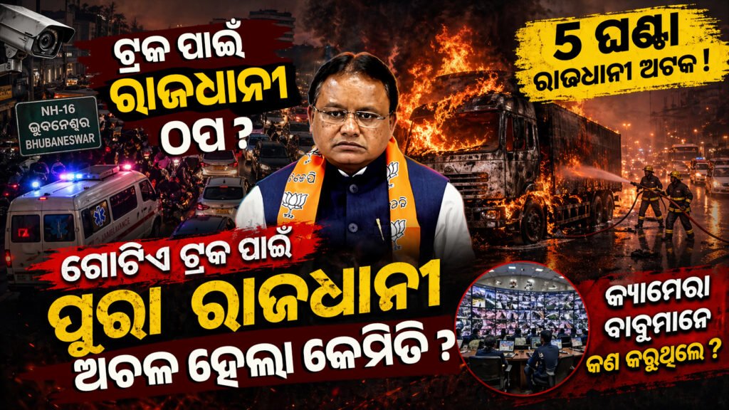 ରାଜ୍ୟର ରାଜଧାନୀରେ ଗତକାଲି ଘଟିଥିବା ଏକ ଘଟଣା ସମସ୍ତଙ୍କୁ ଆଶ୍ଚର୍ୟ ଏବଂ କ୍ରୋଧିତ କରିଛି। ମାତ୍ର ଗୋଟିଏ ଟ୍ରକରେ ଲାଗିଥିବା ନିଆଁ ପୂରା ସହରର ଟ୍ରାଫିକ ବ୍ୟବସ୍ଥାକୁ ପାଞ୍ଚ ଘଣ୍ଟା ପର୍ଯ୍ୟନ୍ତ ଅଚଳ କରିଦେଇଥିଲା। ଏହା କୌଣସି ସିନେମାର ଦୃଶ୍ୟ ନୁହେଁ, ବରଂ ଆମ “ସ୍ମାର୍ଟ ସିଟି”ର ଏକ କଠୋର ଯଥାର୍ଥ ଚିତ୍ର।