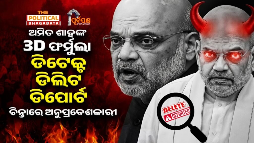 ଗୃହମନ୍ତ୍ରୀ ଅମିତ ଶାହଙ୍କ ଦ୍ୱାରା ପ୍ରଚାରିତ “୩–ଡି ଫର୍ମୁଲା” ଏବେ ନିର୍ବାଚନ କମିଶନଙ୍କ ଏସ୍ଆଇଆର ଯୋଜନାର ଅଂଶବିଶେଷ ବୋଲି କୁହାଯାଉଛି। ଡିଟେକ୍ଟ, ଡିଲିଟ ଓ ଡିପୋର୍ଟ – ଏହି ଧାରାର ସଂକେତ ଭାବେ ଦେଖାଯାଉଛି।