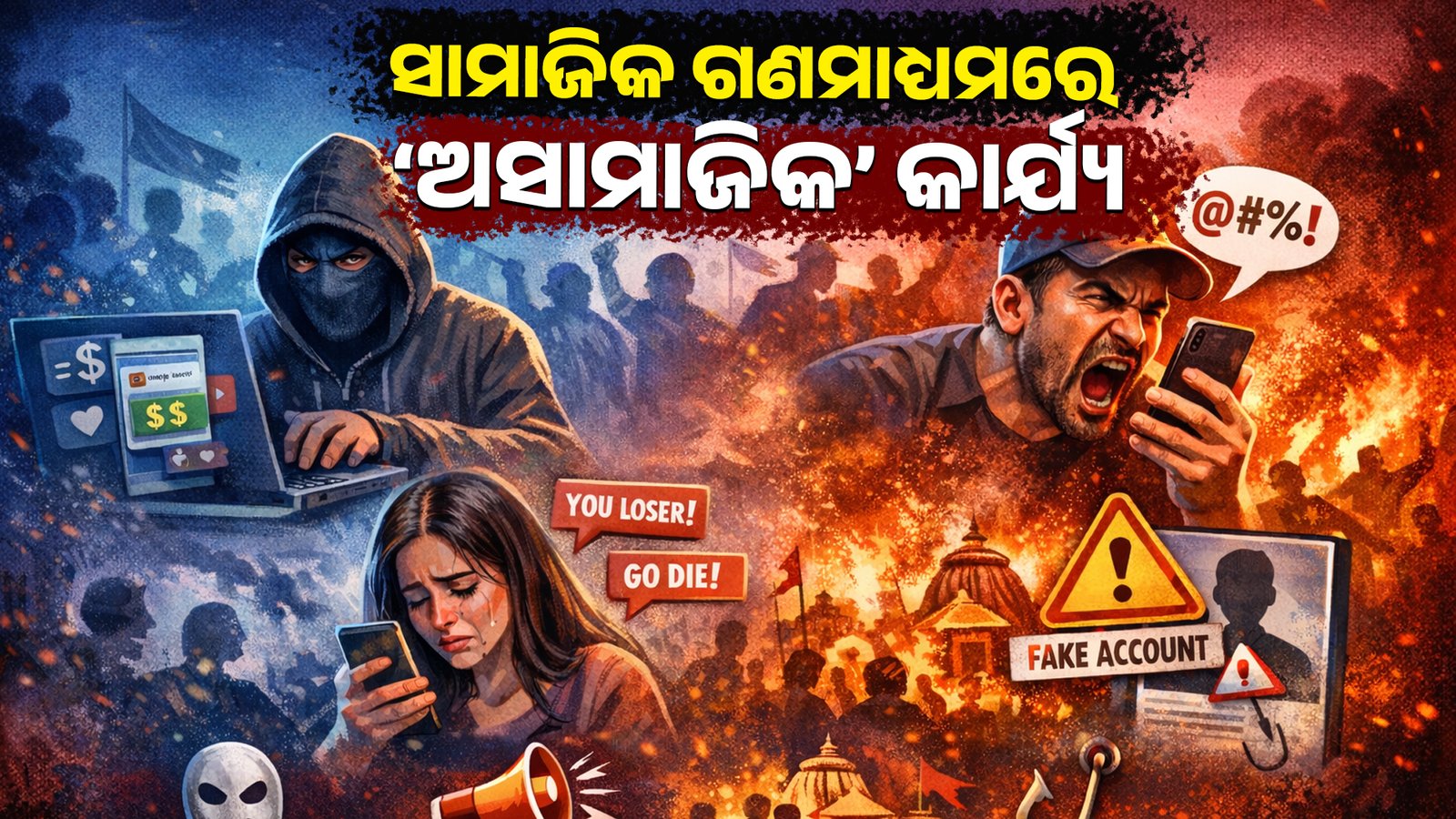 ଅଶ୍ଳୀଳ ଭାଷାରେ ରୋଷ୍ଟିଙ୍ଗ୍ ଠାରୁ ଆରମ୍ଭ କରି ଚରିତ୍ର ସଂହାର, ଫେକ୍ ଆକାଉଣ୍ଟ ମାଧ୍ୟମରେ ଆର୍ଥିକ ଠକେଇ, ସାମ୍ପ୍ରଦାୟିକ ଉତ୍ତେଜନା— ସବୁ କିଛି ଏହି ଡିଜିଟାଲ ମଞ୍ଚରେ ହେଉଛି। ଯେଉଁଠି ସାମାଜିକ ଗଣମାଧ୍ୟମ ଆମକୁ ସୁବିଧା ଦେଉଛି, ସେଠି ଅକଳରେ ମଧ୍ୟ ପକାଉଛି।