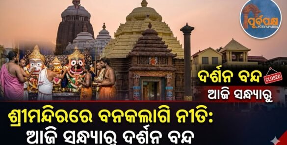 ବୁଧବାର ବୈଶାଖ କୃଷ୍ଣ ତ୍ରୟୋଦଶୀ ଅବସରରେ ପୁରୀ ଶ୍ରୀମନ୍ଦିରରେ ଭାଇଭଉଣୀ ଦେବତାଙ୍କ ବନକଲାଗି ବିଧି ଅନୁଷ୍ଠିତ ହେବ, ଯାହା ଫଳରେ ଭକ୍ତମାନଙ୍କ ପାଇଁ ସାଧାରଣ ଦର୍ଶନ ଅସ୍ଥାୟୀ ଭାବରେ ବନ୍ଦ ରହିବ। ମନ୍ଦିର କାର୍ଯ୍ୟସୂଚୀ ଅନୁଯାୟୀ, ବିଧି ପରିଚାଳନାକୁ ସହଜ କରିବା ପାଇଁ ସନ୍ଧ୍ୟା ୬ଟାରୁ ରାତି ୧୦ଟା ପର୍ଯ୍ୟନ୍ତ ଚାରି ଘଣ୍ଟା ପାଇଁ ଦର୍ଶନ ବନ୍ଦ ରହିବ। ନୀତି ସୂଚୀ ଏବଂ ପାଳନ ଦ୍ୱିତୀୟ ଭୋଗ ମଣ୍ଡପ ଅର୍ପଣ ସମାପ୍ତ ହେବା ପରେ ବନକଲାଗି ବିଧି, … Continue reading ଶ୍ରୀମନ୍ଦିରରେ ବନକଲାଗି ନୀତି: ଆଜି ସନ୍ଧ୍ୟାରୁ ଦର୍ଶନ ବନ୍ଦ || Banakalagi Neeti in Srimandir: darshan closed this evening