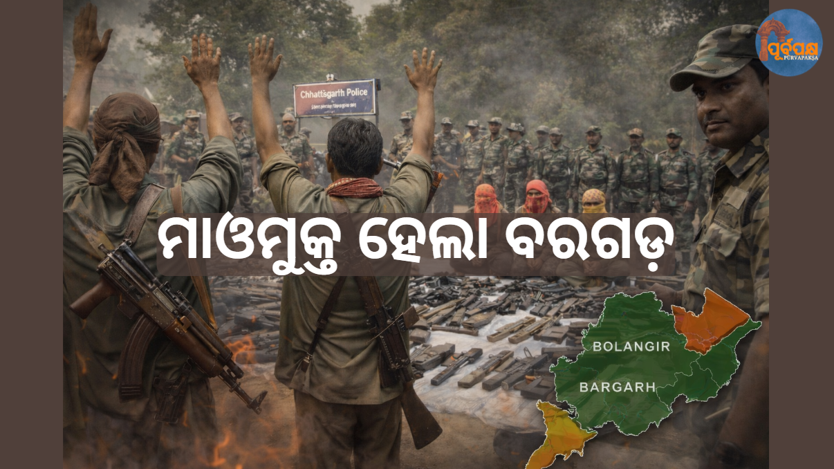 ପଡ଼ୋଶୀ ଛତିଶଗଡ଼ରେ ୧୫ ଜଣ କ୍ୟାଡରଙ୍କ ଆତ୍ମସମର୍ପଣ ପରେ ବଲାଙ୍ଗିର ଏବଂ ବରଗଡ଼ ଜିଲ୍ଲାକୁ ମାଓମୁକ୍ତ ଘୋଷଣା କରି ଓଡ଼ିଶା ନକ୍ସଲ ବିରୋଧୀ ଅଭିଯାନରେ ଏକ ଗୁରୁତ୍ୱପୂର୍ଣ୍ଣ ସଫଳତା ହାସଲ କରିଛି।