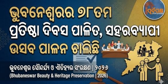 ସୋମବାର ଦିନ ଭୁବନେଶ୍ୱରରେ ୭୮ତମ ପ୍ରତିଷ୍ଠା ଦିବସ ପାଳନ କରାଯାଇଥିଲା ଯେଉଁଥିରେ ବିଭିନ୍ନ ସରକାରୀ କାର୍ଯ୍ୟକ୍ରମ ଏବଂ ଉତ୍ସବମାନ ଅନୁଷ୍ଠିତ ହୋଇଥିଲା। ଜନପ୍ରତିନିଧି, ଅଧିକାରୀ ଏବଂ ବାସିନ୍ଦାଙ୍କ ଅଂଶଗ୍ରହଣରେ ରାଜଧାନୀ ଏହି ଉତ୍ସବ ପାଳନ କରିଥିଲା। ମୁଖ୍ୟ କାର୍ଯ୍ୟକ୍ରମ ଓଡ଼ିଶା ବିଧାନସଭା ସମ୍ମୁଖରେ ଆୟୋଜିତ ହେଉଛି, ଯେଉଁଠାରେ ଏହି ଉତ୍ସବକୁ ସ୍ମରଣ କରିବା ପାଇଁ ବିଶିଷ୍ଟ ବ୍ୟକ୍ତି ଏବଂ ନାଗରିକମାନେ ଏକତ୍ରିତ ହୋଇଥିଲେ। ସହରକୁ ଏହି ଉତ୍ସବ ପାଇଁ ସଜାଯାଇଛି ଉତ୍ସବ ପାଇଁ ସହରକୁ ଆକର୍ଷଣୀୟ ଭାବରେ … Continue reading ଭୁବନେଶ୍ୱରର ୭୮ତମ ପ୍ରତିଷ୍ଠା ଦିବସ ପାଳିତ, ସହରବ୍ୟାପୀ ଉତ୍ସବ ପାଳନ ଚାଲିଛି || Bhubaneswar celebrates its 78th foundation day, celebrations continue across the city