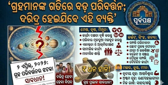 ୨ ଏପ୍ରିଲ୍, ୨୦୨୬, ଜୀବନରେ ଶୃଙ୍ଖଳା ବିକଶିତ କରିବା ଏବଂ ଛୋଟ, କ୍ରମିକ ପରିବର୍ତ୍ତନକୁ ଗ୍ରହଣ କରିବା ପାଇଁ ଉତ୍ସର୍ଗୀକୃତ ଦିନ। ମେଷ, ବୃଷ ଏବଂ ମିଥୁନ ରାଶିରେ ଜନ୍ମିତ ବ୍ୟକ୍ତିମାନେ ସେମାନଙ୍କର କାର୍ଯ୍ୟ ଦକ୍ଷତା ବୃଦ୍ଧି କରିବା ଏବଂ ସେମାନଙ୍କ ପରିବାରର ମୂଳଦୁଆକୁ ମଜବୁତ କରିବା ଉପରେ ଧ୍ୟାନ ଦେବା ଉଚିତ। କର୍କଟ, ସିଂହ ଏବଂ କନ୍ୟା ରାଶିରେ ଜନ୍ମିତ ବ୍ୟକ୍ତିଙ୍କ ପାଇଁ, ଏହା ସେମାନଙ୍କର ଦୃଷ୍ଟିକୋଣକୁ ସ୍ପଷ୍ଟ କରିବା ଏବଂ ସେମାନଙ୍କର ସମ୍ପତ୍ତିକୁ ପ୍ରଭାବଶାଳୀ … Continue reading ଗ୍ରହମାନଙ୍କ ଗତିରେ ବଡ଼ ପରିବର୍ତ୍ତନ; ଦରିଦ୍ର ହେଇଯିବେ ଏହି ବ୍ୟକ୍ତି || Big change in the movement of planets; this person will become poor