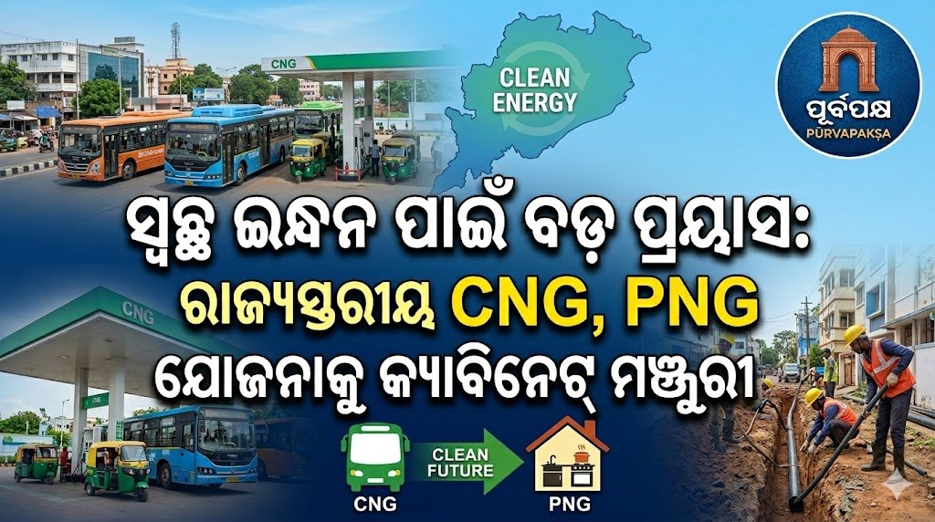 ଓଡ଼ିଶା କ୍ୟାବିନେଟ୍ ଓଡ଼ିଶା ସହର ଗ୍ୟାସ୍ ବଣ୍ଟନ (CGD) ନୀତିକୁ ମଞ୍ଜୁରୀ ଦେଇଛି, ଏହା ପାଇପ୍ ପ୍ରାକୃତିକ ଗ୍ୟାସ୍ (PNG) ଏବଂ ସଙ୍କୁଚିତ ପ୍ରାକୃତିକ ଗ୍ୟାସ୍ (CNG) ଭିତ୍ତିଭୂମିର ପ୍ରସାରକୁ ତ୍ୱରାନ୍ୱିତ କରିବା ପାଇଁ ଏକ ବ୍ୟାପକ ଢାଞ୍ଚା।