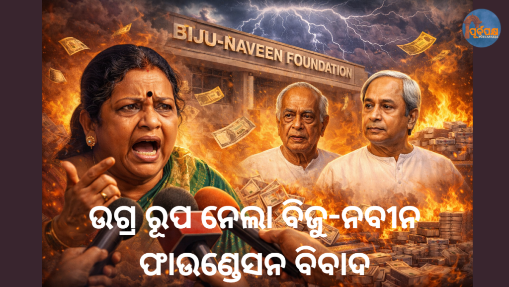 ବିଜେଡି ସୁପ୍ରିମୋ ନବୀନ ପଟ୍ଟନାୟକଙ୍କ ସ୍ୱୀକୃତି ସତ୍ତ୍ୱେ, ଓଡ଼ିଶାରେ ବିଜୁ-ନବୀନ ଫାଉଣ୍ଡେସନ ବିବାଦ ତୀବ୍ର ହୋଇଛି। ନବୀନ କାହିଁକି ୧୦ ମାସ ଧରି ଏହି ମାମଲାକୁ ଲୁଚାଇ ରଖିଥିଲେ ସେ ବିଷୟରେ ଏବେ ପ୍ରଶ୍ନ ଉଠାଯାଉଛି।