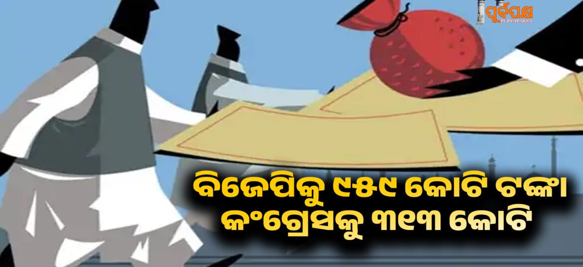 ଭାରତୀୟ ଜନତା ପାର୍ଟି ଆର୍ଥିକ ବର୍ଷ ୨୦୨୪-୨୫ରେ ଇଲେକ୍ଟୋରାଲ୍ ଟ୍ରଷ୍ଟ ମାଧ୍ୟମରେ କଂଗ୍ରେସ ତୁଳନାରେ ପ୍ରାୟ ତିନି ଗୁଣ ଅଧିକ ରାଜନୈତିକ ଦାନ ପାଇଛି । ନିର୍ବାଚନ କମିଶନ (EC) ୱେବସାଇଟରେ ଅପଲୋଡ୍ ହୋଇଥିବା ଏକ ରିପୋର୍ଟ ଅନୁଯାୟୀ, ବିଜେପି ଇଲେକ୍ଟୋରାଲ୍ ଟ୍ରଷ୍ଟ ମାଧ୍ୟମରେ ୯୫୯ କୋଟି ପାଇଥିଲା, ଯେତେବେଳେ କଂଗ୍ରେସ ୩୧୩ କୋଟି ପାଇଥିଲା। ଗତ ବର୍ଷ ଟିଏମସି ମଧ୍ୟ ପ୍ରମୁଖ ଲାଭାର୍ଥୀ ଥିଲା ଗତ ବର୍ଷର ଦାନ ରେକର୍ଡ ଦର୍ଶାଉଛି ଯେ ତୃଣମୂଳ କଂଗ୍ରେସ … Continue reading BJP gets ₹959 cr in electoral donations ।। ନିର୍ବାଚନୀ ଚାନ୍ଦାରେ ବିଜେପିକୁ ୯୫୯ କୋଟି ଟଙ୍କା, କଂଗ୍ରେସକୁ ୩୧୩ କୋଟି ଟଙ୍କା ମିଳିଛି