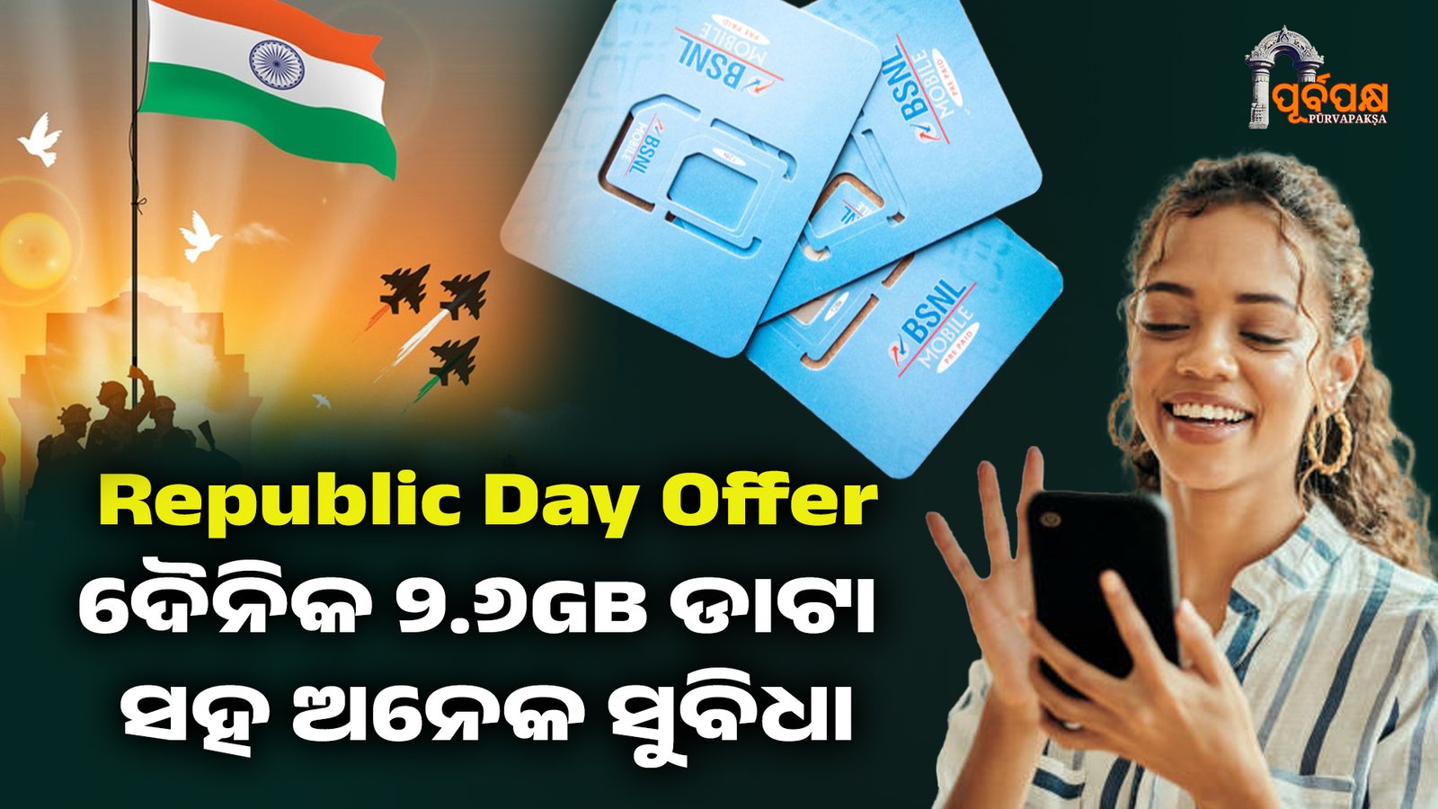 BSNL ୟୁଜର୍ସମାନଙ୍କ ପାଇଁ ଆସିଛି ଏକ ବଡ଼ ଖୁସି ଖବର। ୭୭ତମ ଗଣତନ୍ତ୍ର ଦିବସ ଉପଲକ୍ଷେ ଭାରତ ସଂଚାର ନିଗମ ଲିମିଟେଡ୍ (BSNL) ତାଙ୍କ ଗ୍ରାହକଙ୍କ ପାଇଁ ଏକ ଆକର୍ଷଣୀୟ ପ୍ରିପେଡ୍ ପ୍ଲାନ୍ ଲଞ୍ଚ କରିଛି। ଏହି ନୂଆ ପ୍ଲାନର ନାମ Bharat Connect 2626 Mobile Prepaid Plan ରଖାଯାଇଛି, ଯାହା ଗଣତନ୍ତ୍ର ଦିବସ ଅଫର ଭାବରେ ଆଣାଯାଇଛି।