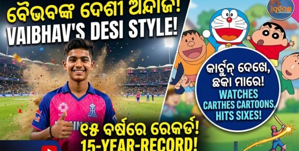 ରାଜସ୍ଥାନ ରୟାଲ୍ସର ୧୫ ବର୍ଷୀୟ ଯୁବ ସେନସେସନ୍ ବୈଭବ ସୂର୍ଯ୍ୟବଂଶୀ ଏବେ କେବଳ ନିଜ ବ୍ୟାଟିଂ ପାଇଁ ନୁହେଁ, ବରଂ ନିଜର ସାଧାରଣ ଜୀବନଶୈଳୀ ଏବଂ ମଜାଦାର ବୟାନ ପାଇଁ ସୋସିଆଲ ମିଡିଆରେ ଭାଇରାଲ ହେବାରେ ଲାଗିଛନ୍ତି। ଲକ୍ଷ୍ନୌ ସୁପର ଜାଏଣ୍ଟସ୍ ବିରୋଧରେ ମ୍ୟାଚ୍ ଜିତିବା ପରେ ବୈଭବଙ୍କର ଏକ ଭିଡିଓ ସାମ୍ନାକୁ ଆସିଛି, ଯେଉଁଥିରେ ସେ ନିଜର ‘ଦେଶୀ’ ଷ୍ଟାଇଲରେ ସମସ୍ତଙ୍କ ମନ ଜିତି ନେଇଛନ୍ତି। “ମୁଁ ଆଜି ବି କାର୍ଟୁନ୍ ଦେଖେ” – ବୈଭବ … Continue reading କାର୍ଟୁନ ପ୍ରିୟ ବୈଭବ ସୂର୍ଯ୍ୟବଂଶୀ || Cartoon lover Vaibhav Suryavanshi