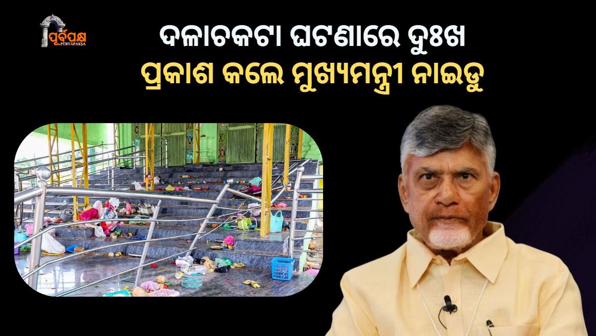 ଆନ୍ଧ୍ରପ୍ରଦେଶର ଶ୍ରୀକାକୁଲମ ଜିଲ୍ଲାର ଭେଙ୍କଟେଶ୍ୱର ସ୍ୱାମୀ ମନ୍ଦିରରେ ଦଳାଚକଟା ଘଟି ଦଶ ଜଣଙ୍କର ମୃତ୍ୟୁ ଘଟିଛି ଏବଂ ଅନେକ ଆହତ ହୋଇଛନ୍ତି। ମୁଖ୍ୟମନ୍ତ୍ରୀ ଚନ୍ଦ୍ରବାବୁ ନାଇଡୁ ଏହି ଦୁଃଖଦ ଘଟଣାରେ ଦୁଃଖ ପ୍ରକାଶ କରିଛନ୍ତି। ଶ୍ରୀ ସତ୍ୟସାଇ ଜିଲ୍ଲାର ପେଡ୍ଡାନ୍ନାବରୀପାଲିରେ ଗରିବ ଲୋକଙ୍କ କଲ୍ୟାଣ ପାଇଁ ଆୟୋଜିତ ଏକ କାର୍ଯ୍ୟକ୍ରମରେ ଭାଷଣ ଦେଇ ମୁଖ୍ୟମନ୍ତ୍ରୀ ନାଇଡୁ କହିଛନ୍ତି ଯେ ଦଳାଚକଟାରେ ଏତେ ଲୋକଙ୍କ ଜୀବନହାନି ଦୁଃଖଦ। ଦୁର୍ଘଟଣା ଉପରେ ଗଭୀର ଶୋକ ପ୍ରକାଶ କରି ମୁଖ୍ୟମନ୍ତ୍ରୀ ମୃତକଙ୍କ ପରିବାର ପ୍ରତି ସମବେଦନା ଜଣାଇଛନ୍ତି।