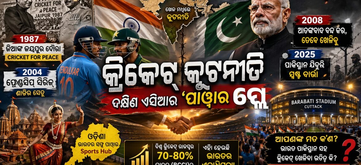 କ୍ରିକେଟ୍ ଦକ୍ଷିଣ ଏସିଆରେ ଏହା କେବଳ ୨୨ ଗଜର ପିଚ୍ରେ ଖେଳାଯାଉଥିବା ଏକ ଖେଳ ନୁହେଁ। ଏହା ଏକ ପ୍ରକାରର ଯୁଦ୍ଧ, ଯେଉଁଠି ବନ୍ଧୁକ ନ ଥାଏ। ଏହା ଏକ ଉତ୍ସବ, ଯେଉଁଠି କୋଟି କୋଟି ହୃଦୟ ଏକାଠି ସ୍ପନ୍ଦିତ ହୁଏ। କିନ୍ତୁ ଆପଣ ଜାଣନ୍ତି କି, ଏହି ଖେଳ ପଛରେ ଲୁଚି ରହିଥାଏ ବିଶ୍ୱର ସବୁଠାରୁ ଜଟିଳ କୂଟନୀତି? ଯେତେବେଳେ ଦୁଇଦେଶ ମଧ୍ୟରେ ସବୁ ରାସ୍ତା ବନ୍ଦ ହୋଇଯାଏ, ସେତେବେଳେ କ୍ରିକେଟ୍ ବ୍ୟାଟ୍ ହିଁ ସଂପର୍କର … Continue reading କ୍ରିକେଟ୍ କୂଟନୀତି: ଦକ୍ଷିଣ ଏସିଆର ‘ପାୱାର ପ୍ଲେ’ || Cricket Diplomacy: South Asia’s ‘Power Play’