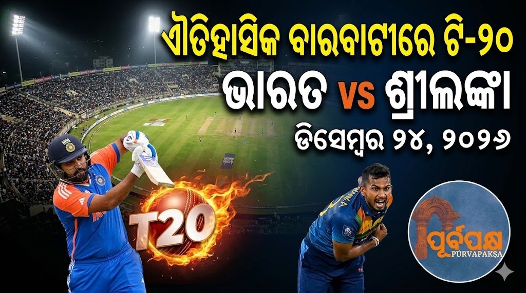 ସମଗ୍ର ଓଡ଼ିଶାର କ୍ରିକେଟ୍ ପ୍ରେମୀଙ୍କ ପାଇଁ ଏକ ଖୁସି ଖବର । କଟକର ଐତିହାସିକ ବାରବାଟୀ ଷ୍ଟାଡିୟମ ପୁଣି ଶୁଭିବ ‘ଇଣ୍ଡିଆ’ ଡାକ । ଡିସେମ୍ବର ୨୪, ୨୦୨୬ରେ ଭାରତ ଓ ଶ୍ରୀଲଙ୍କା ମଧ୍ୟରେ ହେବାକୁ ଥିବା ଏକ ଟି-୨୦ ମ୍ୟାଚ୍ ନେଇ ଚାଲିଛି ଆୟୋଜନ ।