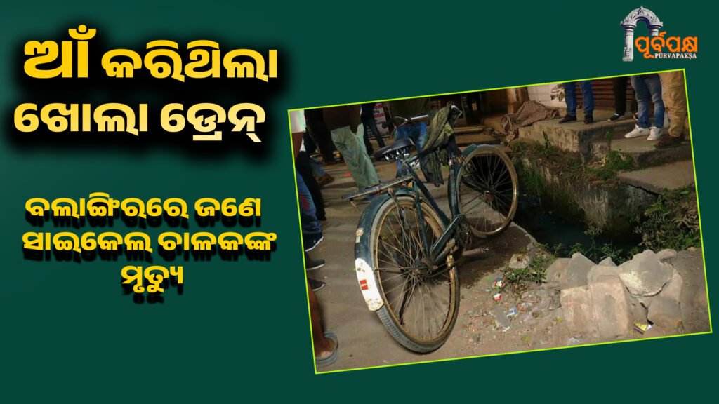 ବୁଧବାର ସନ୍ଧ୍ୟାରେ ବଲାଙ୍ଗିର ସହରରେ ପବ୍ଲିକ୍ ୱାର୍କସ୍ ବିଭାଗ (PWD) ଦ୍ୱାରା ପରିଚାଳିତ ଏକ ଖୋଲା ଡ୍ରେନେଜ୍ ଚ୍ୟାନେଲରେ ପଡ଼ି ଜଣେ ୩୨ ବର୍ଷୀୟ ବ୍ୟକ୍ତିଙ୍କ ମୃତ୍ୟୁ ହୋଇଥିଲା । ଘଟଣାଟି ଜଗନ୍ନାଥପଡ଼ା ଅଞ୍ଚଳରେ ଘଟିଥିଲା ଯେତେବେଳେ ବୀରେନ୍ଦ୍ର ନାଏକ ନାମକ ଜଣେ ବ୍ୟକ୍ତି ସାଇକେଲରେ ଘରକୁ ଫେରୁଥିଲେ। ସୂଚନା ଅନୁଯାୟୀ, ପାଟଣେଶ୍ୱରୀ ମନ୍ଦିର ନିକଟ ଏକ ମୋଡ଼ରେ ନାଏକ ଭାରସାମ୍ୟ ହରାଇ ଖୋଲା ଡ୍ରେନ୍ରେ ପଡ଼ିଯାଇଥିଲେ। ତାଙ୍କୁ ଗୁରୁତର ଆଘାତ ଲାଗିଥିଲା ଏବଂ ଟାଉନ୍ ପୋଲିସ ତାଙ୍କୁ ଉଦ୍ଧାର କରି ହସ୍ପିଟାଲକୁ ସ୍ଥାନାନ୍ତର କରିବା ପରେ ତାଙ୍କୁ ମୃତ ଘୋଷଣା କରିଥିଲା।