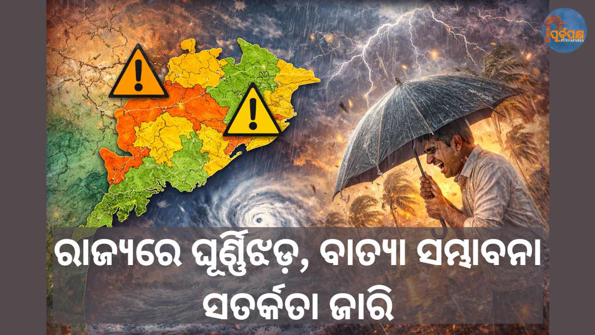 ଉପକୂଳ ଆନ୍ଧ୍ରପ୍ରଦେଶ ଏବଂ ସଂଲଗ୍ନ ଅଞ୍ଚଳ ଉପରେ ଏକ ଉପର ବାୟୁ ଘୂର୍ଣ୍ଣିଝଡ଼ ସଞ୍ଚାଳନ ଆଗାମୀ କିଛି ଦିନ ମଧ୍ୟରେ ରାଜ୍ୟରେ ବ୍ୟାପକ ବଜ୍ରପାତ କାର୍ଯ୍ୟକଳାପ ସୃଷ୍ଟି କରିବ ବୋଲି ଭାରତୀୟ ପାଣିପାଗ ବିଭାଗ (IMD) ଓଡ଼ିଶାର ବିଭିନ୍ନ ଜିଲ୍ଲାରେ କମଳା ଏବଂ ହଳଦିଆ ସତର୍କତା ଜାରି କରିଛି। ଏହାର ପ୍ରଭାବରେ, ୨୬ ମାର୍ଚ୍ଚ ପର୍ଯ୍ୟନ୍ତ ବିଜୁଳି, ଝଡ଼ ପବନ ଏବଂ ଶିଳାବୃଷ୍ଟି ସହିତ ହାଲୁକାରୁ ମଧ୍ୟମ ବର୍ଷା ଅନେକ ଅଞ୍ଚଳକୁ ପ୍ରଭାବିତ କରିବ ବୋଲି ଆଶା କରାଯାଉଛି।