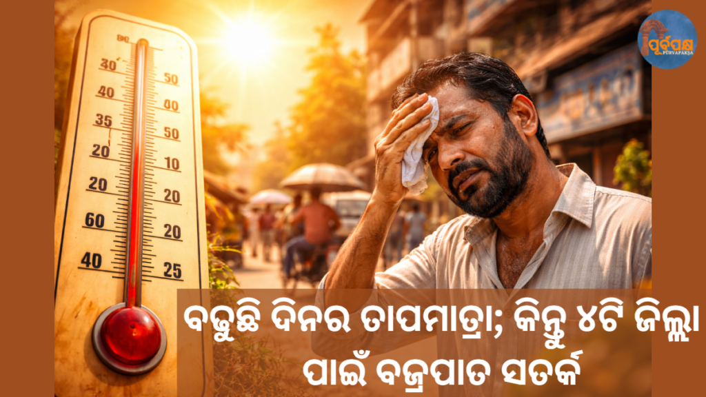ପାଣିପାଗ ଅଧିକାରୀମାନେ ପରାମର୍ଶ ଦେଇଛନ୍ତି ଯେ ଉତ୍ତର ଓଡ଼ିଶାର କିଛି ସ୍ଥାନରେ ବଜ୍ରପାତ କାର୍ଯ୍ୟକଳାପ ସହିତ ଏପରି ପବନ ବେଗ ହୋଇପାରେ, ଯେତେବେଳେ ରାଜ୍ୟର ଅନ୍ୟ ସ୍ଥାନରେ ଆଗାମୀ ଦୁଇ ଦିନ ମଧ୍ୟରେ ଦିନର ତାପମାତ୍ରାରେ ଧୀରେ ଧୀରେ ବୃଦ୍ଧି ପାଇବାର ସମ୍ଭାବନା ରହିଛି।