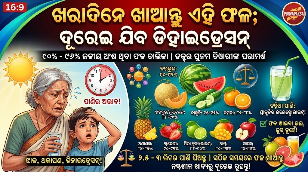 ଏପରି ପରିସ୍ଥିତିରେ, କେବଳ ପାଣି ପିଇବା ଯଥେଷ୍ଟ ନୁହେଁ; ଖାଦ୍ୟରେ ଏପରି ଫଳ ସାମିଲ କରିବା ଗୁରୁତ୍ୱପୂର୍ଣ୍ଣ ଯାହା ଶରୀରକୁ ଆଭ୍ୟନ୍ତରୀଣ ଥଣ୍ଡା ଏବଂ ଜଳୀୟ ଅଂଶ ପ୍ରଦାନ କରେ।