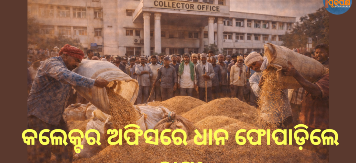 କଲେକ୍ଟର ଅଫିସରେ ଧାନ ଫୋପାଡ଼ିଲେ ଚାଷୀ || Farmer throws paddy at collector’s office