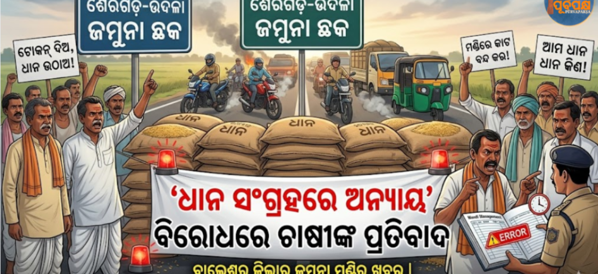 ଓଡ଼ିଶାର ବାଲେଶ୍ୱର ଜିଲ୍ଲାର ନୀଳଗିରି ବ୍ଲକରେ ଚାଷୀମାନେ ଧାନ ସଂଗ୍ରହରେ ଅନିୟମିତତା ଏବଂ ମଣ୍ଡିରେ ଅନୁଚିତ କାଟ ଅଭିଯୋଗ କରି ପ୍ରତିବାଦ କରିଥିଲେ। ଜମୁନା ମଣ୍ଡିରେ ଏହି ଆନ୍ଦୋଳନ କରାଯାଇଥିଲା, ଯେଉଁଠାରେ ଚାଷୀମାନେ ଦାବି କରିଥିଲେ ଯେ ଟୋକନ୍ ସିଷ୍ଟମ୍ ଅନୁଯାୟୀ କ୍ରୟ କରାଯାଉ ନାହିଁ। ସେମାନଙ୍କର କ୍ରୋଧ ପ୍ରକାଶ କରି, ଚାଷୀମାନେ ରାସ୍ତାରେ ଧାନ ବସ୍ତା ରଖି ଶେରଗଡ଼-ଉଦଳା ଜମୁନା ଛକରେ ଯାତାୟାତ ଅବରୋଧ କରିଥିଲେ, ଯାହା ଫଳରେ ଯାନବାହାନ ଚଳାଚଳ ବାଧାପ୍ରାପ୍ତ ହୋଇଥିଲା। ସେମାନେ … Continue reading ‘ଧାନ ସଂଗ୍ରହରେ ଅନ୍ୟାୟ’ ବିରୋଧରେ ଚାଷୀଙ୍କ ପ୍ରତିବାଦ || Farmers protest against ‘injustice in rice procurement’