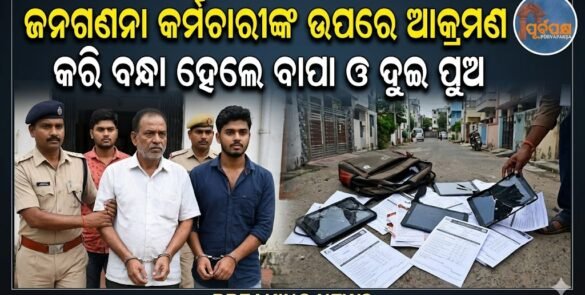 ଗୁରୁବାର ଓଡ଼ିଶାର ଢେଙ୍କାନାଳ ଜିଲ୍ଲାର କାମାକ୍ଷାନଗରରେ ଜନଗଣନା କର୍ମଚାରୀଙ୍କୁ ଆକ୍ରମଣ କରିବା ଅଭିଯୋଗରେ ଜଣେ ପୁରୁଷ ଏବଂ ତାଙ୍କ ଦୁଇ ପୁଅ ସମେତ ଅତି କମରେ ତିନି ଜଣଙ୍କୁ ଗିରଫ କରାଯାଇଛି। ପରେ ସେମାନଙ୍କୁ କୋର୍ଟରେ ହାଜର କରାଯାଇଥିଲା ବୋଲି ପୋଲିସ ସୂଚନା ଦେଇଛି। ଅଭିଯୁକ୍ତମାନଙ୍କୁ ନିକୁଞ୍ଜ ରମଣ ସତପଥୀ ଏବଂ ତାଙ୍କ ପୁଅ- ଭାନୁପ୍ରକାଶ ସତପଥୀ ଏବଂ ଉଦିତ ସ୍ୱପ୍ନ ସତପଥୀ ଭାବରେ ଚିହ୍ନଟ କରାଯାଇଛି। କର୍ତ୍ତବ୍ୟରତ ସରକାରୀ ଅଧିକାରୀଙ୍କ ଉପରେ ଆକ୍ରମଣ ପରେ ସ୍ଥାନୀୟ … Continue reading ଜନଗଣନା କର୍ମଚାରୀଙ୍କ ଉପରେ ଆକ୍ରମଣ କରି ବନ୍ଧା ହେଲେ ବାପା ଓ ଦୁଇ ପୁଅ || Father and two sons arrested for attacking census staff
