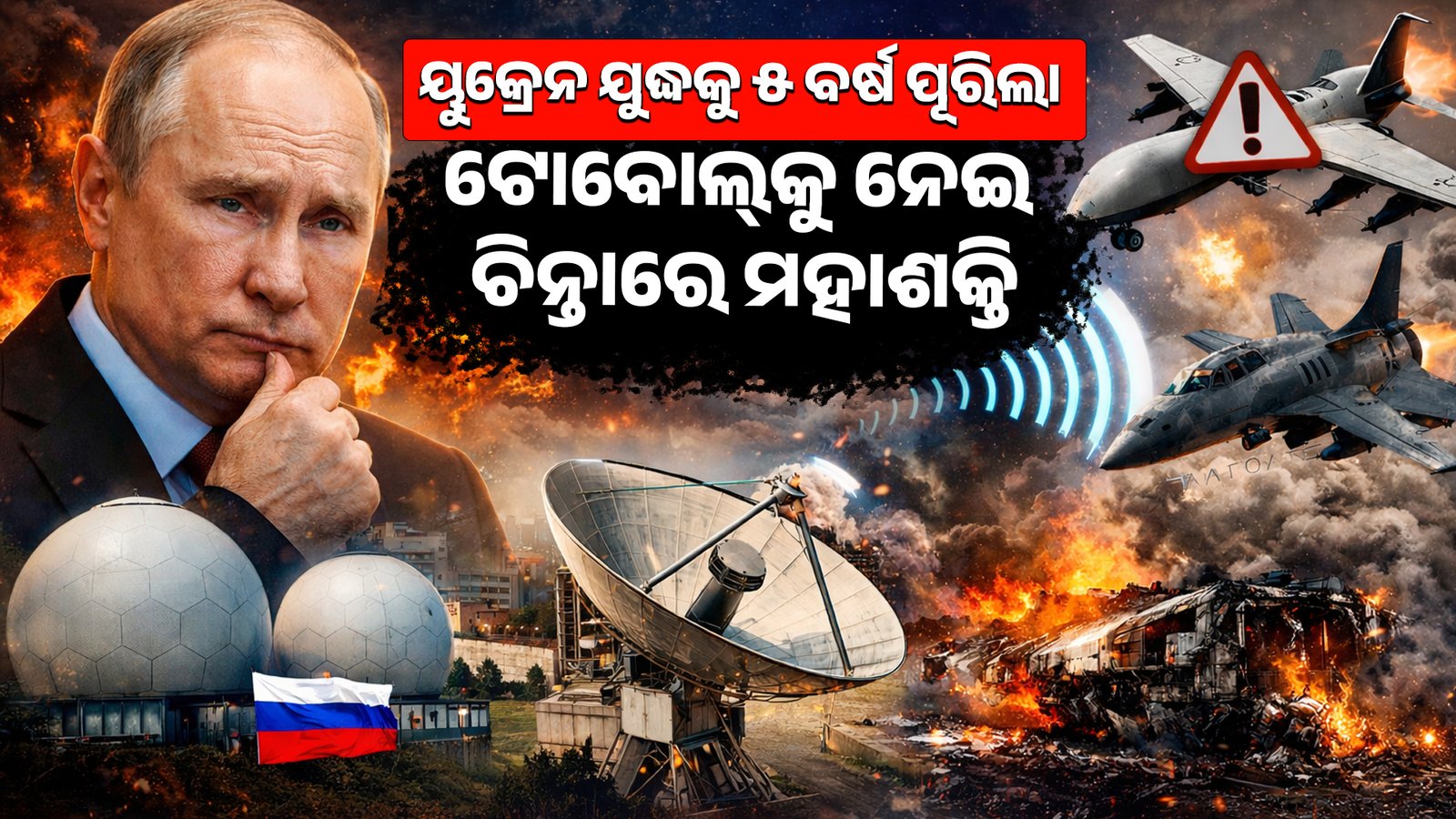 କଳ୍ପନା କରନ୍ତୁ, ଆକାଶରେ ଉଡ଼ୁଥିବା ହଜାର ହଜାର ବିମାନ ଯଦି ହଠାତ୍ ସେମାନଙ୍କର ଦିଗ ହରାଇ ବସନ୍ତି କିମ୍ବା ପରସ୍ପର ସହ ଧକ୍କା ହୁଅନ୍ତି, ତେବେ କଣ ହେବ? ଗତ ୨୪ ତାରିଖରେ ରୁଷ-ୟୁକ୍ରେନ ଯୁଦ୍ଧକୁ ୫ବର୍ଷ ପୂରିବା ପରେ ଏହି ଭୟ ଏବେ ବିଶ୍ୱର ମହାଶକ୍ତିମାନଙ୍କୁ ଘାରିଲାଣି। ରୁଷର ରାଷ୍ଟ୍ରପତି ଭ୍ଲାଦିମିର ପୁଟିନ ଏମିତି ଏକ ଗୁପ୍ତ ଅସ୍ତ୍ର ପ୍ରସ୍ତୁତ କରିଛନ୍ତି, ଯାହା ବିନା କୌଣସି ଗୁଳି ଗୋଳାରେ ଶତ୍ରୁର ବିମାନ ଓ ମିସାଇଲକୁ ଅକାମୀ କରିଦେଇପାରେ। ଏହି ଅସ୍ତ୍ରର ନାମ ହେଉଛି ‘ଟୋବୋଲ୍’ (Tobol)।