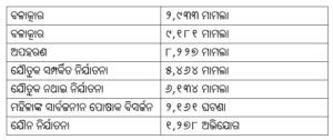 ଓଡ଼ିଶାରେ ମହିଳା ବିରୋଧୀ ଅପରାଧ: ମାମଲା ଅନୁଯାୟୀ ବିବରଣୀ: