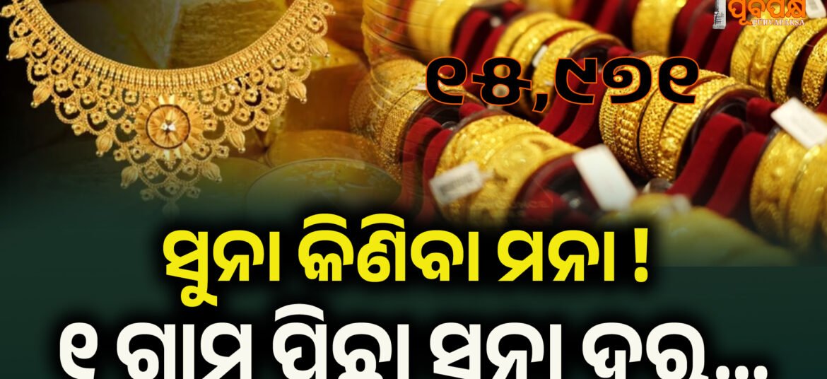 ସୁନା ଦର ଲଗାତାର ବୃଦ୍ଧି ପାଇ ନୂଆ ରେକର୍ଡ ସୃଷ୍ଟି କରୁଛି। ଗତ କିଛି ଦିନ ମଧ୍ୟରେ ସୁନା ଦର ଗ୍ରାମ ପିଛା ୧୫ ହଜାର ଟଙ୍କା ପାର୍ କରିଯାଇଛି। ଯଦି ଆପଣ ଆଜି ସୁନା ଗହଣା କିଣିବାକୁ ଯୋଜନା କରୁଛନ୍ତି, ତେବେ ଏହି ଖବର ଆପଣଙ୍କ ପାଇଁ ଅତ୍ୟନ୍ତ ଗୁରୁତ୍ୱପୂର୍ଣ୍ଣ। ଗତକାଲି ଅପେକ୍ଷା ଆଜି ସୁନା ଦରରେ ଗ୍ରାମ ପିଛା ପ୍ରାୟ ୫୪୦ ଟଙ୍କାର ବୃଦ୍ଧି ଦେଖିବାକୁ ମିଳିଛି। ଏହି ବୃଦ୍ଧି ପରେ ବଜାରରେ ଗହଣା … Continue reading Gold Rate ।। ବୃଦ୍ଧି ପାଇଲା ସୁନା ଦର, ଓଡ଼ିଶାରେ ଗ୍ରାମ ପିଛା ୨୨ କ୍ୟାରେଟ୍ ସୁନା ଦର…