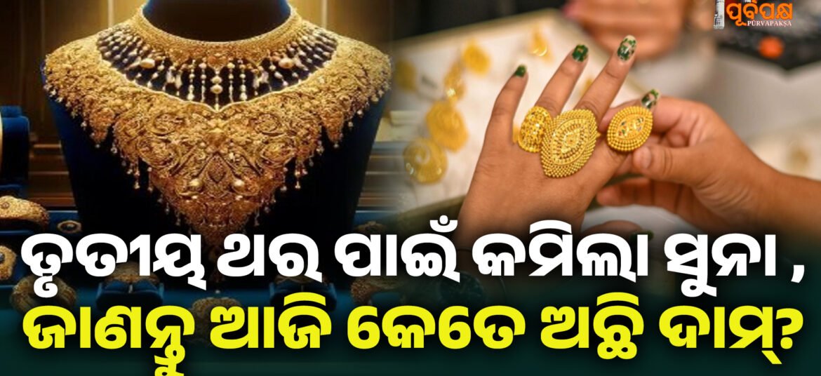 Gold rate ।। ତୃତୀୟ ଥର ପାଇଁ କମିଲା ସୁନା , ଜାଣନ୍ତୁ ଆଜି କେତେ ଅଛି ଦାମ୍?