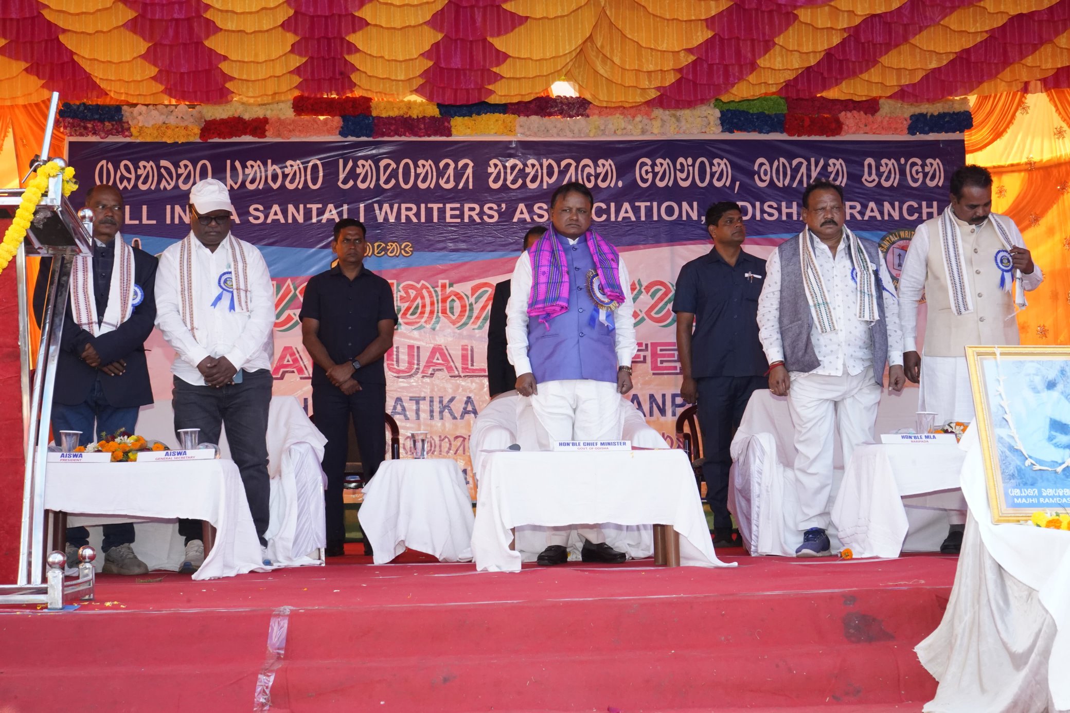 ଏଥି ସହିତ, ମୁଖ୍ୟମନ୍ତ୍ରୀ ମୋହନ ଚରଣ ମାଝୀ ତୃଣମୂଳ ସ୍ତରରେ ସାନ୍ଥାଳୀ ଲେଖକମାନଙ୍କୁ ଉତ୍ସାହିତ କରିବା ପାଇଁ ଭାଗବତ ହେମ୍ବ୍ରମ, ଗୋବିନ୍ଦ ହାଁସାଦାଃ, ମୋହନ ସୋରେନ୍, ମଧୁସୂଦନ ମୁର୍ମୁ ଓ ଜ୍ୟୋତିଲାଲ୍ ହେମ୍ବ୍ରମ ପ୍ରମୁଖଙ୍କୁ ସମ୍ମାନୀତ କରିଥିଲେ। ଏହି ଅବସରରେ ମନ୍ କି ବାତ୍ ରେ ପ୍ରଧାନମନ୍ତ୍ରୀ ନରେନ୍ଦ୍ର ମୋଦୀଜୀଙ୍କ ଦ୍ୱାରା ପ୍ରଶଂସିତ ସାନ୍ଥାଳୀ ଲିପିର ଟାଇପ୍ ବୋର୍ଡର ପ୍ରଚଳନ ପାଇଁ ରାମଜିତ୍ ଟୁଡୁ ଏବଂ ୟୁଟ୍ୟୁବର ଲବ ହାଁସଦାଃଙ୍କୁ ମଧ୍ୟ ମୁଖ୍ୟମନ୍ତ୍ରୀ ସମ୍ମାନୀତ କରିଥିଲେ।