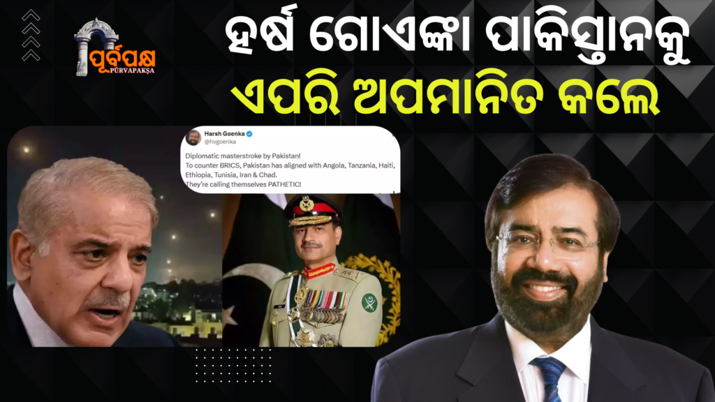 ପ୍ରବୀଣ ବ୍ୟବସାୟୀ ହର୍ଷ ଗୋଏଙ୍କା ପାକିସ୍ତାନ ଉପରେ ଏହିପରି କଟାକ୍ଷ କରିଛନ୍ତି । ଭାରତୀୟ ବ୍ୟବସାୟୀ ଏବଂ RPG ଗ୍ରୁପର ଅଧ୍ୟକ୍ଷ ହର୍ଷ ଗୋଏଙ୍କା ଇନଷ୍ଟାଗ୍ରାମରେ ଏକ ପୋଷ୍ଟରେ ପାକିସ୍ତାନ ଉପରେ ଏକ ହାସ୍ୟରସପୂର୍ଣ୍ଣ କଟାକ୍ଷ କରିଛନ୍ତି। ସେ ଲେଖିଛନ୍ତି, “ପାକିସ୍ତାନର କୂଟନୈତିକ ମାଷ୍ଟରଷ୍ଟ୍ରୋକ୍!” BRICS କୁ ମୁକାବିଲା କରିବା ପାଇଁ, ପାକିସ୍ତାନ ଆଙ୍ଗୋଲା, ତାଞ୍ଜାନିଆ, ହାଇତି, ଇଥିଓପିଆ, ଟ୍ୟୁନିସିଆ, ଇରାନ ଏବଂ ଚାଦ ସହିତ ଏକ ମେଣ୍ଟ ଗଠନ କରିଛି। ସେମାନେ ନିଜକୁ ଦୟନୀୟ ବୋଲି କହୁଛନ୍ତି!