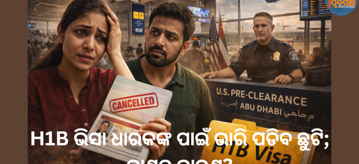 ଟ୍ରମ୍ପ ପ୍ରଶାସନ କ୍ଷମତାକୁ ଆସିବା ପରଠାରୁ, H1B ଭିସା କାର୍ଯ୍ୟକ୍ରମ କ୍ରମଶଃ କଠୋର ହୋଇଗଲାଣି। ଏହି ସମୟରେ, ଜଣେ ଭାରତୀୟ ମହିଳା କର୍ମୀ ସୋସିଆଲ ମିଡିଆରେ ତାଙ୍କର କଷ୍ଟ ସେୟାର କଲେ। ମହିଳାଙ୍କ ଅନୁଯାୟୀ, ସେ ନଭେମ୍ବରରେ ତାଙ୍କ ଝିଅର ଜନ୍ମଦିନ ପାଳନ କରିବାକୁ ଭାରତ ଆସିଥିଲେ ଏବଂ ତାଙ୍କ ସ୍ୱାମୀଙ୍କ ସହିତ ଡିସେମ୍ବର ୧୨, ୨୦୨୫ ପାଇଁ ତାଙ୍କର ଭିସା ମୋହର ଲଗାଯାଇଥିଲା। ମହିଳା ଜଣକ ତାଙ୍କ ଭିସା କିପରି ବାତିଲ ହୋଇଥିଲା ତାହା ବ୍ୟାଖ୍ୟା … Continue reading H1B ଭିସା ଧାରକଙ୍କ ପାଇଁ ଭାରି ପଡିବ ଛୁଟି; ଜାଣନ୍ତୁ କାରଣ? || Holiday will be heavy for H1B visa holders; know why?