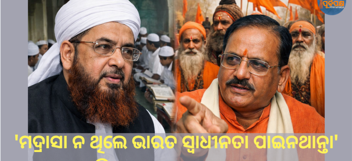 ଅଖିଳ ଭାରତୀୟ ମୁସଲିମ ଜମାତର ସଭାପତି ମୌଲାନା ଶାହାବୁଦ୍ଦିନ ରଜଭି ବାରେଲଭି ସମ୍ପ୍ରତି ଏକ ବିବୃତ୍ତି ଜାରି କରି କହିଛନ୍ତି ଯେ “ମଦ୍ରାସା ବିନା ସ୍ୱାଧୀନତା ଏତେ ଶୀଘ୍ର ହାସଲ ହୋଇପାରିନଥାନ୍ତା।” ବିଶ୍ୱ ହିନ୍ଦୁ ପରିଷଦ (ଭିଏଚ୍ପି)ର ରାଷ୍ଟ୍ରୀୟ ମୁଖପାତ୍ର ବିନୋଦ ବଂଶଲ ମୌଲାନା ସାହାବୁଦ୍ଦିନଙ୍କ ବିବୃତ୍ତି ଉପରେ ପ୍ରତିକ୍ରିୟା ଦେଇ କହିଛନ୍ତି, “ମୌଲାନା ମଦ୍ରାସାଗୁଡ଼ିକୁ ସ୍ୱାଧୀନତା ସହିତ ତୁଳନା କରିବା ମୋତେ ହାସ୍ୟାସ୍ପଦ ଲାଗୁଛି।” ମୌଲାନା ଏହି ବିବୃତ୍ତି କାହିଁକି ଦେଲେ? ପ୍ରକୃତରେ, ମୌଲାନା ସାହାବୁଦ୍ଦିନ … Continue reading ‘ମଦ୍ରାସା ନ ଥିଲେ ଭାରତ ସ୍ୱାଧୀନତା ପାଇନଥାନ୍ତା’ ଏହି ବୟାନର, ଉତ୍ତର କ’ଣ? || ‘If it weren’t for madrasas, India wouldn’t have gotten independence’ is the banner, what is the answer?