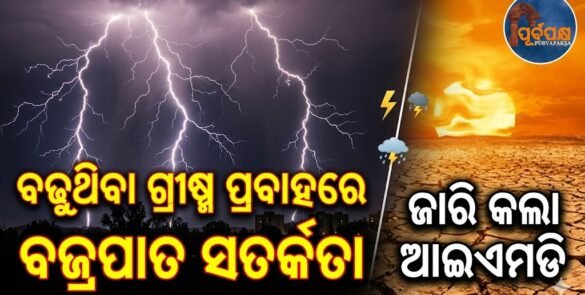 ଭାରତୀୟ ପାଣିପାଗ ବିଭାଗ (IMD) ଓଡ଼ିଶା ପାଇଁ ଏକ ବହୁ-ଦିନିଆ ପାଣିପାଗ ପରାମର୍ଶ ଜାରି କରିଛି, ଯେଉଁଥିରେ ଆଗାମୀ କିଛି ଦିନ ମଧ୍ୟରେ ସମଗ୍ର ରାଜ୍ୟରେ ଝଡ଼ବର୍ଷା, ଝଡ଼ ପବନ ଏବଂ ଉତ୍ତପ୍ତ ଗ୍ରୀଷ୍ମ ପ୍ରବାହ ପରିସ୍ଥିତିର ସତର୍କତା ଦିଆଯାଇଛି। ବଜ୍ରପାତ କାର୍ଯ୍ୟକଳାପ ତୀବ୍ର ହୋଇଛି IMD ପୂର୍ବାନୁମାନ ଅନୁଯାୟୀ, ଏପ୍ରିଲ ୨୧ ତାରିଖରୁ ବିଭିନ୍ନ ଜିଲ୍ଲାରେ ଝଡ଼ବର୍ଷା ଏବଂ ବଜ୍ରପାତ ସହିତ ହାଲୁକାରୁ ମଧ୍ୟମ ବର୍ଷା ହେବାର ସମ୍ଭାବନା ଅଛି। ମୟୂରଭଞ୍ଜ ଏବଂ କେନ୍ଦୁଝର ଭଳି … Continue reading ବଢ଼ୁଥିବା ଗ୍ରୀଷ୍ମ ପ୍ରବାହରେ ବଜ୍ରପାତ ସତର୍କତା ଜାରି କଲା ଆଇଏମଡି || IMD issues thunderstorm warning amid increasing heatwave