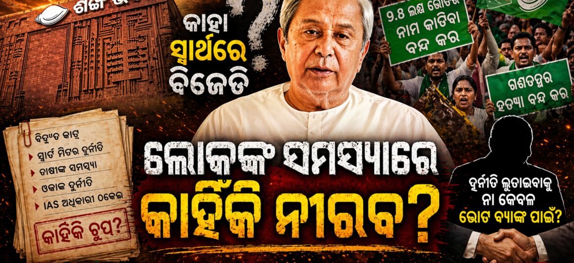 ଏମିତି ଏକ ବିଷୟ ଯାହା ଓଡ଼ିଶାର ପ୍ରତ୍ୟେକ ସଚେତନ ନାଗରିକଙ୍କୁ ଚିନ୍ତାରେ ପକାଇ ଦେଇଛି। ଗତ ୨୪ ବର୍ଷ ଧରି ଯେଉଁ ବିଜୁ ଜନତା ଦଳ ଓଡ଼ିଶାର ପ୍ରଶାସନ, ରାଜନୀତି ଏବଂ ସମାଜର କୋଣ ଅନୁକୋଣରେ ନିଜର ଆଧିପତ୍ୟ ବିସ୍ତାର କରିଥିଲା, ସେହି ଦଳ ଆଜି କାହିଁକି ଆତ୍ମରକ୍ଷା ପାଇଁ ରାଜରାସ୍ତାକୁ ଓହ୍ଲାଇଛି? ଗତ ଦୁଇ ଦଶନ୍ଧିରୁ ଅଧିକ ସମୟ ଧରି ଆମେ ଦେଖିଥିଲେ ଶାସକ ବିଜେଡି ଏବଂ ଏକ ପ୍ରକାର ନିଷ୍କ୍ରିୟ ବିରୋଧୀ ଦଳକୁ। କିନ୍ତୁ … Continue reading କାହା ସ୍ୱାର୍ଥରେ ବିଜେଡି? || In whose interest is BJD?