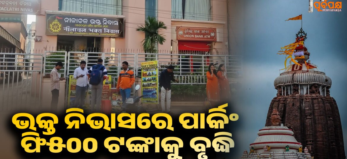 ପୁରୀର ଶ୍ରୀ ଜଗନ୍ନାଥ ମନ୍ଦିର ପ୍ରଶାସନ (SJTA) ତୀର୍ଥ ନଗରୀରେ ଥିବା ଭକ୍ତ ନିବାସ ସୁବିଧାରେ ପାର୍କିଂ ଶୁଳ୍କକୁ ସଂଶୋଧନ କରିଛି, ଚାରି ଚକିଆ ଯାନ ପାଇଁ ୨୪ ଘଣ୍ଟା ପାଇଁ ୫୦୦ ଟଙ୍କା ଶୁଳ୍କ ବୃଦ୍ଧି କରିଛି । ଯେଉଁଥିରେ ୧୮ ପ୍ରତିଶତ GST ଅନ୍ତର୍ଭୁକ୍ତ। ନୂତନ ନିର୍ଦ୍ଦେଶ ଅନୁଯାୟୀ, ଶ୍ରୀମନ୍ଦିର ପ୍ରଶାସନ ଦ୍ୱାରା ପରିଚାଳିତ ଚାରୋଟି ଭକ୍ତ ନିବାସ ମଧ୍ୟରୁ ଯେକୌଣସି ସ୍ଥାନରେ ସେମାନଙ୍କର ଚାରି ଚକିଆ ଯାନ ପାର୍କିଂ କରୁଥିବା ଭକ୍ତମାନଙ୍କୁ ୨୪ … Continue reading increased the parking fee to Rs. 500 at four devotee residences ।। ପୁରୀ ଶ୍ରୀମନ୍ଦିର ମନ୍ଦିର ପ୍ରଶାସନ ଭକ୍ତ ନିଭାସରେ ପାର୍କିଂ ଫି୫00 ଟଙ୍କାକୁ ବୃଦ୍ଧି କରିଛି