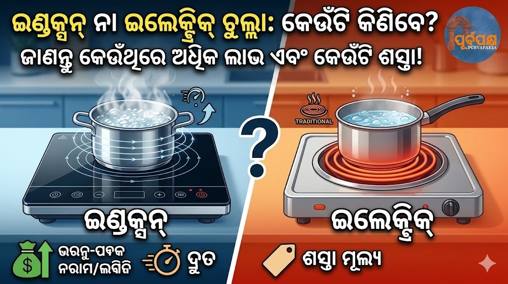 ଅନେକ ସମୟରେ ଲୋକେ ଏହି ଦୁଇଟି ଭିତରେ ଦ୍ୱନ୍ଦ୍ୱରେ ପଡ଼ିଯାଆନ୍ତି। କେହି କହେ ଇଣ୍ଡକ୍ସନ୍ରେ ରୋଷେଇ ଜଲଦି ହୁଏ, ତ ଆଉ କେହି କହେ ଇଲେକ୍ଟ୍ରିକ୍ ଚୁଲ୍ଲା କିଣିବା ଶସ୍ତା। ତେବେ ପ୍ରକୃତ ସତ କଣ? ଆପଣଙ୍କ ଘର, ବଜେଟ୍ ଏବଂ ଆବଶ୍ୟକତା ଅନୁଯାୟୀ କେଉଁଟି ସବୁଠାରୁ ସଠିକ୍ ବିକଳ୍ପ ହେବ?