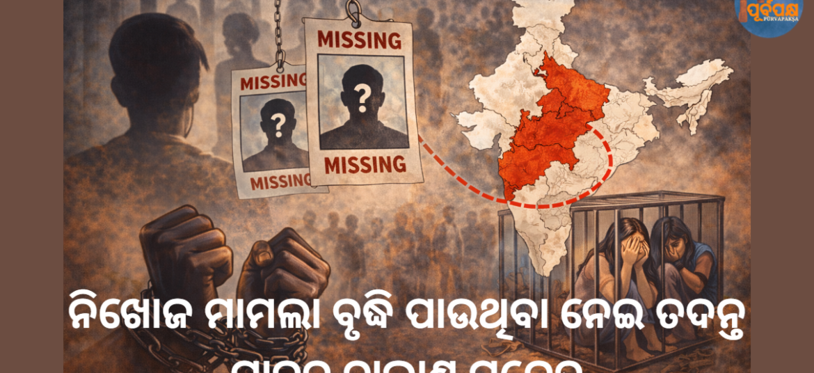ନିଖୋଜ ବ୍ୟକ୍ତିଙ୍କ ସଂଖ୍ୟା ବୃଦ୍ଧି ଏବଂ ସେମାନଙ୍କୁ ଖୋଜିବାର ଦୁର୍ବଳ ହାରକୁ ଉଜାଗର କରୁଥିବା ରିପୋର୍ଟଗୁଡ଼ିକ ଉପରେ ଭାରତର ଜାତୀୟ ମାନବାଧିକାର କମିଶନ (ଏନଏଚଆରସି) ସ୍ୱତଃ ଦୃଷ୍ଟି ଦେଇଛି। ଓଡ଼ିଶା ମାନବ ଚାଲାଣ ମାମଲା ବୃଦ୍ଧି ପାଉଥିବା ରାଜ୍ୟଗୁଡ଼ିକ ମଧ୍ୟରୁ ଗୋଟିଏ ହୋଇ ଉଭା ହୋଇଛି। କମିଶନ ଓଡ଼ିଶା, ବିହାର, ତେଲେଙ୍ଗାନା, ମହାରାଷ୍ଟ୍ର ଏବଂ ରାଜସ୍ଥାନର ମୁଖ୍ୟ ସଚିବ ଏବଂ ପୋଲିସ ମହାନିର୍ଦ୍ଦେଶକ (ଡିଜିପିଏସ)ଙ୍କୁ ନୋଟିସ୍ ଜାରି କରି ଏହି ପ୍ରସଙ୍ଗରେ ଦୁଇ ସପ୍ତାହ ମଧ୍ୟରେ ଏକ … Continue reading ନିଖୋଜ ମାମଲା ବୃଦ୍ଧି ପାଉଥିବା ନେଇ ତଦନ୍ତ; ମାନବ ଚାଲାଣ ସନ୍ଦେହ || Investigation into rising number of missing cases; human trafficking suspected