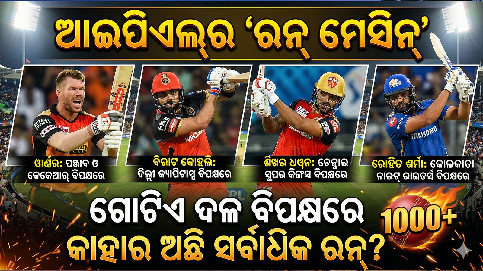 ଇଣ୍ଡିଆନ୍ ପ୍ରିମିୟର ଲିଗ୍ ବା ଆଇପିଏଲ୍କୁ କୁହାଯାଏ ‘ଅନିଶ୍ଚିତତାର ଖେଳ’। ଏଠାରେ ପ୍ରତିଟି ବଲ୍ରେ ରୋମାଞ୍ଚ ଥାଏ ଏବଂ ପ୍ରତିଟି ଓଭରରେ ରେକର୍ଡ ବଦଳେ। କିନ୍ତୁ ଆଇପିଏଲ୍ର ଗତ ୧୭ ବର୍ଷର ଇତିହାସକୁ ଯଦି ଆମେ ଅନୁଧ୍ୟାନ କରିବା, ତେବେ କିଛି ଏମିତି ଖେଳାଳିଙ୍କୁ ପାଇବା ଯେଉଁମାନେ କୌଣସି ଏକ ନିର୍ଦ୍ଦିଷ୍ଟ ଦଳ ବିରୁଦ୍ଧରେ ଖେଳିବାକୁ ପଡ଼ିଲେ ରୀତିମତ ରନ୍ର ବର୍ଷା କରିଥାନ୍ତି। ସେମାନଙ୍କ ବ୍ୟାଟ୍ ସେହି ନିର୍ଦ୍ଦିଷ୍ଟ ଦଳର ବୋଲରଙ୍କ ପାଇଁ ସତେ ଯେମିତି ଏକ ‘କାଳ’ ସାଜିଥାଏ। ଡେଭିଡ୍ ୱାର୍ଣ୍ଣରଙ୍କ ଠାରୁ ଆରମ୍ଭ କରି ବିରାଟ କୋହଲିଙ୍କ ପର୍ଯ୍ୟନ୍ତ, ଏମିତି କିଛି ଦିଗ୍ଗଜ ଅଛନ୍ତି ଯେଉଁମାନେ ଏକ ନିର୍ଦ୍ଦିଷ୍ଟ ଫ୍ରାଞ୍ଚାଇଜ୍ ବିପକ୍ଷରେ ୧୦୦୦ରୁ ଅଧିକ ରନ୍ କରିବାର ବିରଳ ସଫଳତା ପାଇଛନ୍ତି।