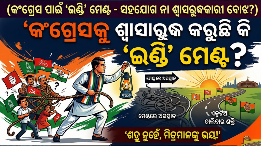 ଇଣ୍ଡିଆ ବ୍ଲକ୍ରେ କଂଗ୍ରେସର ଉପସ୍ଥିତି ଏବେ ‘ବିନା ସମ୍ମାନର ସହବାସ’ ଭଳି ମନେ ହେଉଛି। ଯଦି କଂଗ୍ରେସକୁ ବିଜେପିର ପ୍ରକୃତ ବିକଳ୍ପ ସାଜିବାକୁ ହେବ, ତେବେ ତାକୁ ଆଞ୍ଚଳିକ ଦଳଗୁଡ଼ିକର କବଳରୁ ବାହାରି ନିଜର ଏକ ସ୍ୱତନ୍ତ୍ର ପରିଚୟ ସୃଷ୍ଟି କରିବାକୁ ପଡ଼ିବ। ମେଣ୍ଟରୁ ଅସ୍ଥାୟୀ ପ୍ରସ୍ଥାନ କେବଳ ଦଳ ପାଇଁ ଆତ୍ମସମୀକ୍ଷାର ସୁଯୋଗ ଦେବ ନାହିଁ, ବରଂ ଆଞ୍ଚଳିକ ଦଳଗୁଡ଼ିକୁ ମଧ୍ୟ କଂଗ୍ରେସର ମୂଲ୍ୟ ବୁଝାଇ ଦେବ। କଂଗ୍ରେସର ଶକ୍ତି ହିଁ ମେଣ୍ଟର ଶକ୍ତି ହେବା ଉଚିତ, କିନ୍ତୁ ବର୍ତ୍ତମାନର ମେଣ୍ଟ କଂଗ୍ରେସର ଶକ୍ତିକୁ କୋରି ଖାଉଛି।