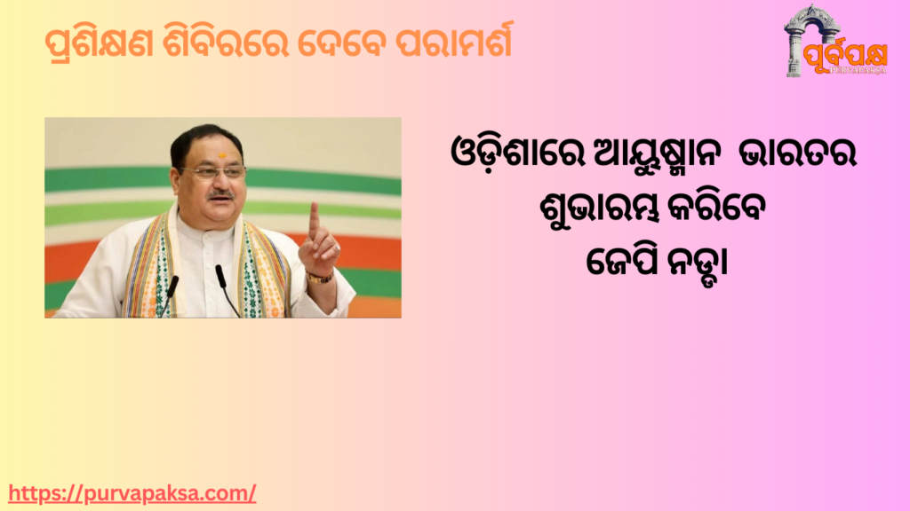 ଆସନ୍ତା ୧୧ ତାରିଖରେ କଟକରେ ଆୟୋଜିତ ଏକ ସ୍ୱତନ୍ତ୍ର କାର୍ଯ୍ୟକ୍ରମରେ ଆୟୁଷ୍ମାନ ଭାରତ ପ୍ରଧାନମନ୍ତ୍ରୀ ଜନ ଆରୋଗ୍ୟ ଯୋଜନାର ଶୁଭାରମ୍ଭ କରିବେ କେନ୍ଦ୍ର ସ୍ୱାସ୍ଥ୍ୟମନ୍ତ୍ରୀ ଜେପି ନଡ୍ଡା। ଏପ୍ରିଲ ୧୧ ତାରିଖ ଅପରାହ୍ନରୁ ପୁରୀରେ ଆରମ୍ଭ ହେବାକୁ ଥିବା ଦଳର ସାଂସଦ ଓ ବିଧାୟକଙ୍କ ପ୍ରଶିକ୍ଷଣ ଶିବିରରେ ବିଜେପି ରାଷ୍ଟ୍ରୀୟ ଅଧ୍ୟକ୍ଷ ନଡ୍ଡା ଯୋଗଦେବାର କାର୍ଯ୍ୟକ୍ରମ ରହିଛି। ଏହି କର୍ମଶାଳା ଏପ୍ରିଲ ୧୩ ସନ୍ଧ୍ୟା ପର୍ଯ୍ୟନ୍ତ ଚାଲିବ ଏବଂ ଏଥିରେ ଦଳର ରାଷ୍ଟ୍ରୀୟ ସଭାପତି ଓ ବରିଷ୍ଠ ନେତାମାନେ ଯୋଗଦେବେ।