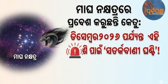 ବୈଦିକ ଜ୍ୟୋତିଷର ନୀତି ଅନୁସାରେ, ଛାୟା ଗ୍ରହ କେତୁ ଏପ୍ରିଲ ୨୦ତାରିଖରେ ମାଘ ନକ୍ଷତ୍ରରେ ପ୍ରବେଶ କରିଥିଲେ। କେତୁ ବର୍ତ୍ତମାନ ୫ଡିସେମ୍ବର ୨୦୨୬ ପର୍ଯ୍ୟନ୍ତ ଏହି ନକ୍ଷତ୍ରରେ ଅବସ୍ଥାନ କରିବେ। ଜ୍ୟୋତିଷମାନେ ବିଶ୍ୱାସ କରନ୍ତି ଯେ କେତୁଙ୍କ ଦ୍ୱାରା ନକ୍ଷତ୍ରରେ ଏହି ପରିବର୍ତ୍ତନ ଅନେକ ରାଶିର ଜୀବନରେ ହଠାତ୍ ଉତ୍ଥାନ-ପତନ, ମାନସିକ ଦ୍ୱନ୍ଦ୍ୱ ଏବଂ ଅପ୍ରତ୍ୟାଶିତ ଘଟଣା ଆଣିପାରେ। ବିଶେଷକରି, ଏହି ସମୟ ଚାରୋଟି ନିର୍ଦ୍ଦିଷ୍ଟ ରାଶି ପାଇଁ ସତର୍କତା ଅବଲମ୍ବନ କରିବାର ସମୟକୁ ସୂଚିତ କରେ। … Continue reading ମାଘ ନକ୍ଷତ୍ରରେ ପ୍ରବେଶ କରୁଛନ୍ତି କେତୁ: ଡିସେମ୍ବର୨୦୨୬ ପର୍ଯ୍ୟନ୍ତ ଏହି ୪ରାଶି ପାଇଁ ‘ସତର୍କବାଣୀ ଘଣ୍ଟି’! || Ketu is entering Magha Nakshatra: ‘Warning bell’ for these 4 zodiac signs till December 2026!