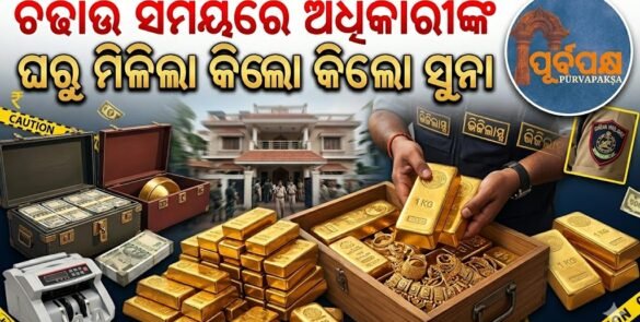 ଓଡ଼ିଶା ପୋଲିସ ହାଉସିଂ ଆଣ୍ଡ୍ ୱେଲଫେୟାର କର୍ପୋରେସନ (OPHWC)ର ଡେପୁଟି ମ୍ୟାନେଜର ବିଦ୍ୟୁତ୍ ରଞ୍ଜନ ଭୋଳଙ୍କ ବିରୋଧରେ ଚାଲିଥିବା ତଲାସି ସମୟରେ ଓଡ଼ିଶା ଭିଜିଲାନ୍ସ ନଗଦ, ସୁନା ଏବଂ ଅସ୍ଥାବର ସମ୍ପତ୍ତି ସମେତ ବିପୁଳ ସମ୍ପତ୍ତି ଠାବ କରିଛି। ଭିଜିଲାନ୍ସ ସୂତ୍ର ଅନୁଯାୟୀ, ଏପର୍ଯ୍ୟନ୍ତ ଠାବ ହୋଇଥିବା ସମ୍ପତ୍ତିରେ ୪୮.୮ ଲକ୍ଷ ଟଙ୍କା ନଗଦ, ୨୯ଟି ପ୍ଲଟ୍, ଦୁଇଟି ବହୁତଳ କୋଠା ଏବଂ ଭୁବନେଶ୍ୱରରେ ଗୋଟିଏ ଫ୍ଲାଟ୍ ଅନ୍ତର୍ଭୁକ୍ତ, ଏବଂ ପ୍ରାୟ ୧.୧୪ କିଲୋଗ୍ରାମ ଓଜନର ସୁନା … Continue reading ଚଢାଉ ସମୟରେ ଅଧିକାରୀଙ୍କ ଘରୁ ମିଳିଲା କିଲୋ କିଲୋ ସୁନା || Kilograms of gold recovered from officer’s house during raid
