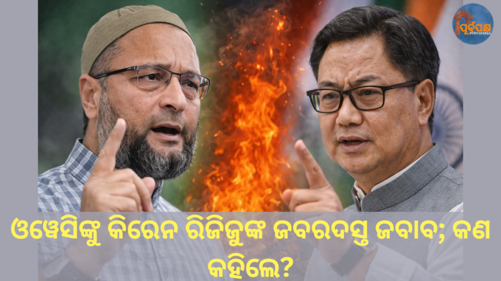 କେନ୍ଦ୍ର ମନ୍ତ୍ରୀ କିରେନ ରିଜିଜୁ ଅଲ୍ ଇଣ୍ଡିଆ ମଜଲିସ୍-ଏ-ଇତ୍ତେହାଦୁଲ୍ ମୁସଲିମିନ୍ (ଏଆଇଏମଆଇଏମ) ଅଧ୍ୟକ୍ଷ ଅସଦୁଦ୍ଦିନ୍ ଓୱେସିଙ୍କ ବୟାନ ଉପରେ ପ୍ରତିଆକ୍ରମଣ କରିଛନ୍ତି। ରିଜିଜୁ କହିଛନ୍ତି ଯେ ରାଜନୀତି ଖେଳାଯାଉଛି, କିନ୍ତୁ ସରକାରଙ୍କୁ ସବୁବେଳେ ସମାଲୋଚନା କରାଯିବା ଉଚିତ୍ ନୁହେଁ। ପ୍ରଧାନମନ୍ତ୍ରୀ ମୋଦୀଙ୍କୁ ଅପବ୍ୟବହାର କରାଯିବା ଉଚିତ୍ ନୁହେଁ।