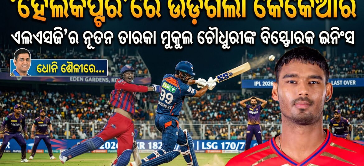 କ୍ରିକେଟର ମହାରାଜା ଏମ୍ ଏସ୍ ଧୋନିଙ୍କର ସେହି ପ୍ରସିଦ୍ଧ ‘ହେଲିକପ୍ଟର ସଟ୍’ ପୁଣି ଥରେ ଇଡେନ ଗାର୍ଡେନ୍ସରେ ଜୀବନ୍ତ ହୋଇଉଠିଛି। କିନ୍ତୁ ଏଥର ବ୍ୟାଟ୍ ଧୋନିଙ୍କର ନଥିଲା, ବରଂ ଥିଲା ୨୧ ବର୍ଷୀୟ ଯୁବ ପ୍ରତିଭା ମୁକୁଲ ଚୌଧୁରୀଙ୍କର। ଆଇପିଏଲ ୨୦୨୬ର ଏକ ସ୍ମରଣୀୟ ମୁକାବିଲାରେ କୋଲକାତା ନାଇଟ୍ ରାଇଡର୍ସ (କେକେଆର) ହାତରୁ ବିଜୟ ଛଡ଼ାଇ ନେଇଛନ୍ତି ଲକ୍ଷ୍ନୌ ସୁପରଜାଏଣ୍ଟସ୍ (ଏଲଏସଜି)ର ନୂତନ ତାରକା ମୁକୁଲ। ଶେଷ ବଲ୍ର ସେହି ରୋମାଞ୍ଚକର ବାଇ ରନ୍ ଏବଂ ତା’ … Continue reading ମୁକୁଲ ଚୌଧୁରୀଙ୍କ ‘ହେଲିକପ୍ଟର’ରେ ଉଡ଼ିଗଲା କେକେଆର || KKR flew in Mukul Chowdhury’s ‘helicopter’