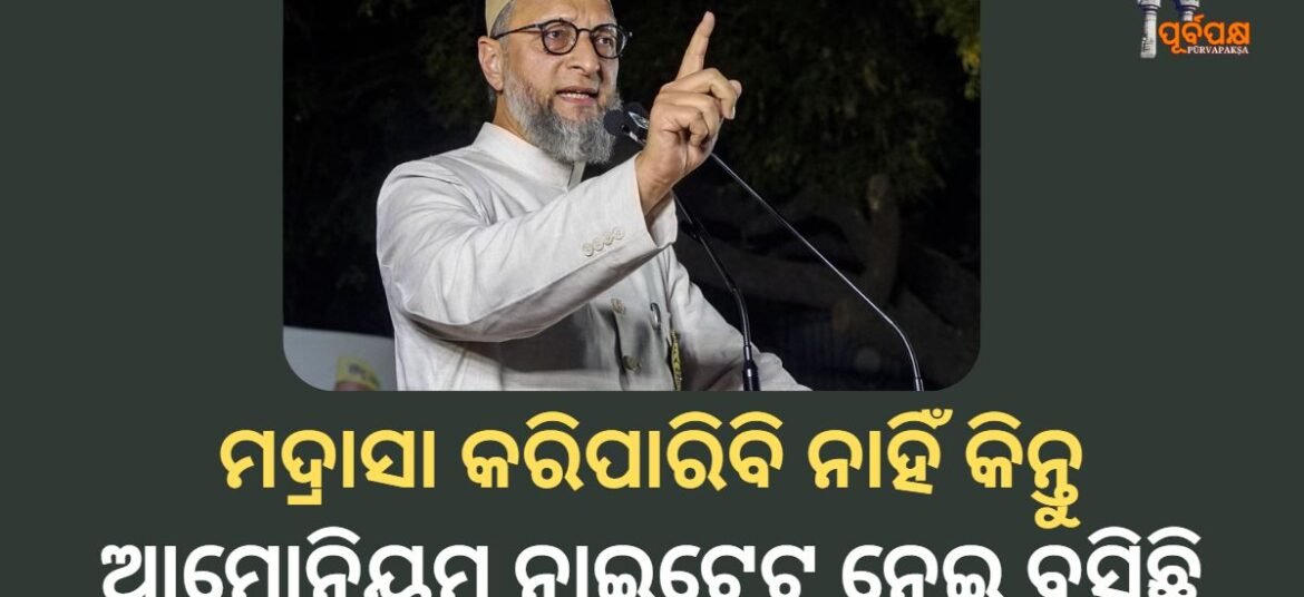 ନଭେମ୍ବର ୧୦ ତାରିଖରେ ଜାତୀୟ ରାଜଧାନୀ ଦିଲ୍ଲୀର ଲାଲକିଲ୍ଲା ନିକଟରେ ହୋଇଥିବା ବିସ୍ଫୋରଣରେ ୧୩ ଜଣଙ୍କର ମୃତ୍ୟୁ ହୋଇଥିଲା ଏବଂ ୨୦ ରୁ ଅଧିକ ଲୋକ ଆହତ ହୋଇଥିଲେ। AIMIM ମୁଖ୍ୟ ଅସଦୁଦ୍ଦିନ ଓୱେସି ଏହି ଘଟଣାରେ କଡ଼ା ପ୍ରତିକ୍ରିୟା ପ୍ରକାଶ କରିଥିଲେ। ସେ କହିଥିଲେ ଯେ କିଛି ଲୋକ ଏତେ ନିଷ୍ଠୁର ଯେ ସେମାନେ ମଦ୍ରାସା କିମ୍ବା ସ୍କୁଲ ପାଇଁ ଗୋଟିଏ କୋଠରୀ ମଧ୍ୟ ତିଆରି କରିପାରୁ ନାହାଁନ୍ତି, ତଥାପି ସେମାନେ ଏବେ ବି ଆମୋନିୟମ୍ … Continue reading Madrasa can’t but sitting with ammonium nitrate ।। ମଦ୍ରାସା କରିପାରିବି ନାହିଁ କିନ୍ତୁ ଆମୋନିୟମ୍ ନାଇଟ୍ରେଟ୍ ନେଇ ବସିଛି