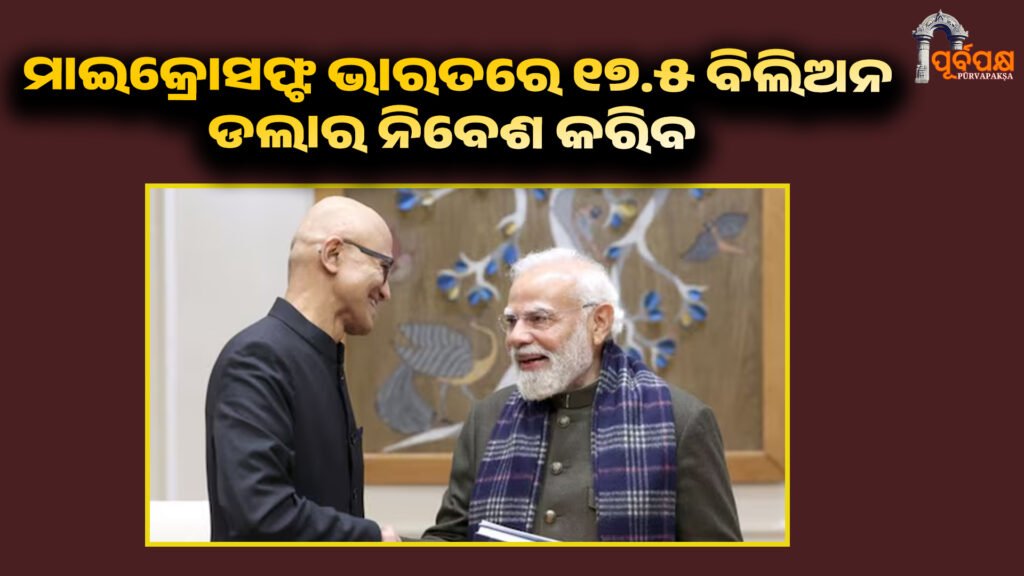 ମାଇକ୍ରୋସଫ୍ଟ ଭାରତରେ ଆସନ୍ତା ୪ ବର୍ଷ ଏଆଇ (କୃତ୍ରିମ ବୁଦ୍ଧିମତ୍ତା) ଭିତ୍ତିଭୂମି ନିର୍ମାଣରେ ୧୭.୫ ବିଲିଅନ ଡଲାର ନିବେଶ କରିବ । ୪ ଦିନିଆ ଭାରତ ଗସ୍ତରେ ଆସିଥିବା ମାଇକ୍ରୋସଫ୍ଟ ସିଇଓ ସତ୍ୟ ନାଦେଲା ଆଜି ପ୍ରଧାନମନ୍ତ୍ରୀ ନରେନ୍ଦ୍ର ମୋଦୀଙ୍କୁ ଭେଟିବା ପରେ ଏହି ସୂଚନା ଦେଇଛନ୍ତି। ପ୍ରଧାନମନ୍ତ୍ରୀଙ୍କ ସହ ଉଠାଇଥିବା ଫଟୋ ‘ଏକ୍ସ’ରେ ସେୟାର କରି ସେ ଲେଖିଛନ୍ତି ଭାରତରେ ଏଆଇ ସୁଯୋଗ ସମ୍ପର୍କରେ ଉତ୍ସାହପ୍ରଦ ଆଲୋଚନା ହେଲା। ଦେଶର ଅଭିଳାଷକୁ ସାକାର କରିବା ପାଇଁ କମ୍ପାନି ଏଆଇ କ୍ଷେତ୍ରରେ ୧୭.୫ ବିଲିଅନ ଡଲାର (ପ୍ରାୟ ୧.୫ ଲକ୍ଷ କୋଟି ଟଙ୍କା) ନିବେଶ କରିବ। ଏସିଆରେ ଏହା ମାଇକ୍ରୋସଫ୍ଟର ସର୍ବାଧିକ ନିବେଶ ବୋଲି ସେ କହିଛନ୍ତି।