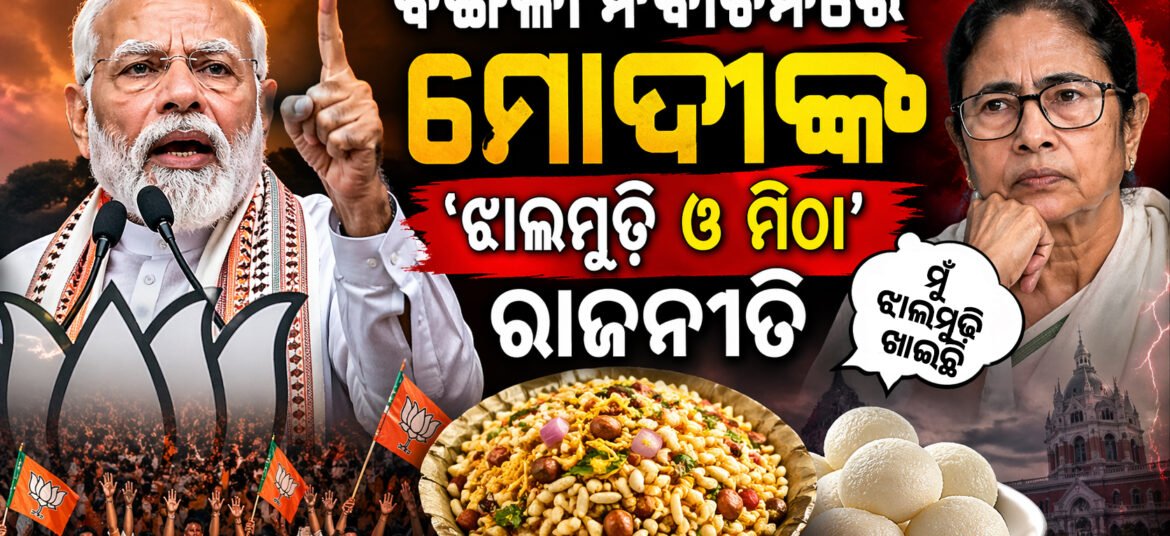 ପଶ୍ଚିମବଙ୍ଗ ରାଜନୀତି ଏବେ ଏକ ନୂଆ ମୋଡ଼ରେ। ନିର୍ବାଚନୀରେ କେବଳ ଭୋଟ୍ ନୁହେଁ, ଏବେ ଖାଦ୍ୟପେୟକୁ ନେଇ ମଧ୍ୟ ଚାଲିଛି ଜୋରଦାର ଚର୍ଚ୍ଚା। ଗୁରୁବାର କ୍ରିଷ୍ଣାନଗରରେ ପ୍ରଧାନମନ୍ତ୍ରୀ ନରେନ୍ଦ୍ର ମୋଦୀ ଏପରି କିଛି କହିଛନ୍ତି, ଯାହା ପଶ୍ଚିମବଙ୍ଗରୁ ଦିଲ୍ଲୀ ପର୍ଯ୍ୟନ୍ତ କମ୍ପନ ସୃଷ୍ଟି କରିଛି। ପ୍ରଧାନମନ୍ତ୍ରୀ କହିଛନ୍ତି, “ମେ ୪ ତାରିଖରେ ବଙ୍ଗଳାରେ ବିଜେପିର ବିଜୟ ଉତ୍ସବ ହେବ। ଆଉ ସେଦିନ ମିଠା ସହିତ ‘ଝାଲମୁଢ଼ି’ ମଧ୍ୟ ବଣ୍ଟାଯିବ।” ଏହି କଥାଟି ଶୁଣିବାକୁ ସାଧାରଣ ଲାଗୁଥିଲେ ବି … Continue reading ବଙ୍ଗଳା ନିର୍ବାଚନରେ ମୋଦୀଙ୍କ ‘ଝାଲମୁଢ଼ି ଓ ମିଠା’ ରାଜନୀତି || Modi’s ‘sweaty and sweet’ politics in Bengal elections