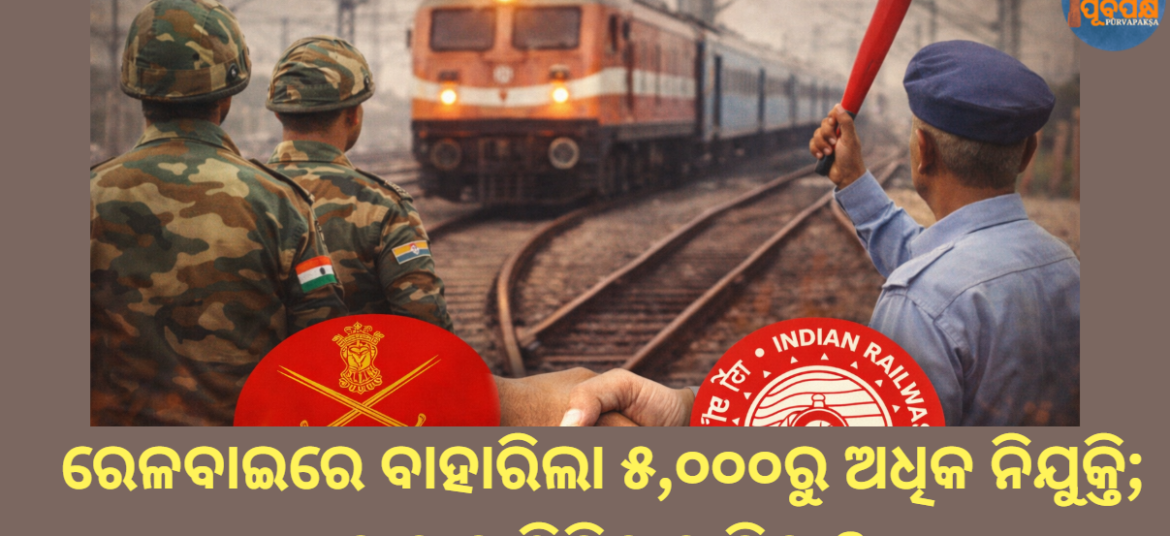 ସଶସ୍ତ୍ର ବାହିନୀର ପୂର୍ବତନ ସୈନିକଙ୍କ ପାଇଁ ନିଯୁକ୍ତିକୁ ଦ୍ରୁତ କରିବା ପାଇଁ ଏକ ପ୍ରମୁଖ ପ୍ରୟାସ ସ୍ୱରୂପ, ଭାରତୀୟ ରେଳବାଇ ୫,୦୦୦ ରୁ ଅଧିକ ପୂର୍ବତନ ସୈନିକଙ୍କୁ ଚୁକ୍ତିଭିତ୍ତିକ ଆଧାରରେ ପଏଣ୍ଟସମ୍ୟାନ୍ ଭାବରେ ନିଯୁକ୍ତି କରିବ, ଯଦିଓ ଏହା ଅବସର ପରବର୍ତ୍ତୀ କ୍ୟାରିୟର ପଥକୁ ସୁଦୃଢ଼ କରିବା ପାଇଁ ଭାରତୀୟ ସେନା ସହିତ ଏକ ବ୍ୟାପକ ସହଯୋଗ ଢାଞ୍ଚା ପ୍ରସ୍ତୁତ କରୁଛି। ଏହି ପଦକ୍ଷେପ ରେଳ ମନ୍ତ୍ରଣାଳୟ ଏବଂ ଭାରତୀୟ ସେନା ମଧ୍ୟରେ ଏକ ନୂତନ ଆନୁଷ୍ଠାନିକ … Continue reading ରେଳବାଇରେ ବାହାରିଲା ୫,୦୦୦ରୁ ଅଧିକ ନିଯୁକ୍ତି; କାହାକୁ ମିଳିବ ଚାକିରୀ? || More than 5,000 jobs announced in Railways; Who will get a job?